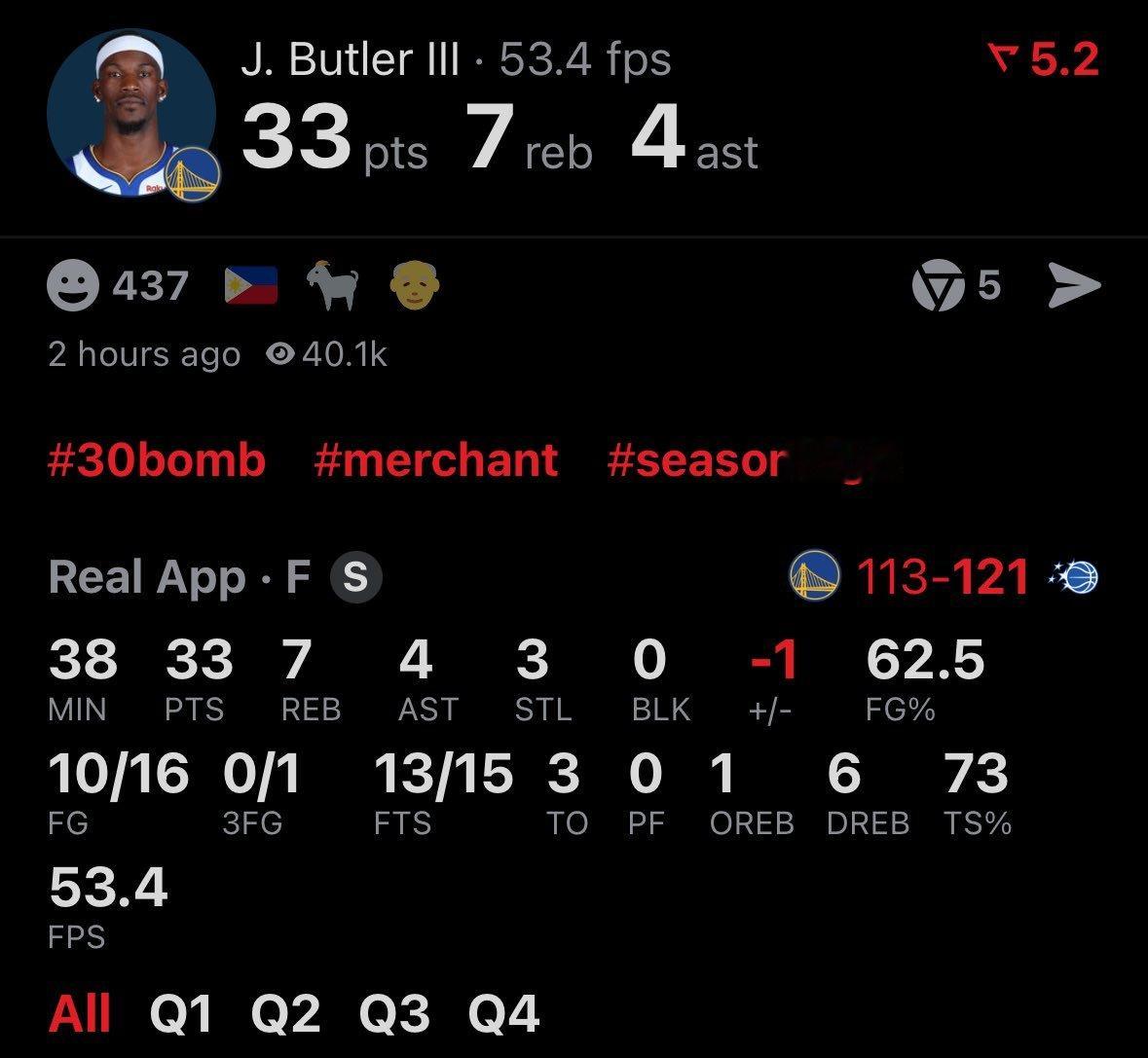 今天是故意气那个赌球老哥的吧,巴特勒今日数据33分7篮板4助攻1个T两分两分凿啊