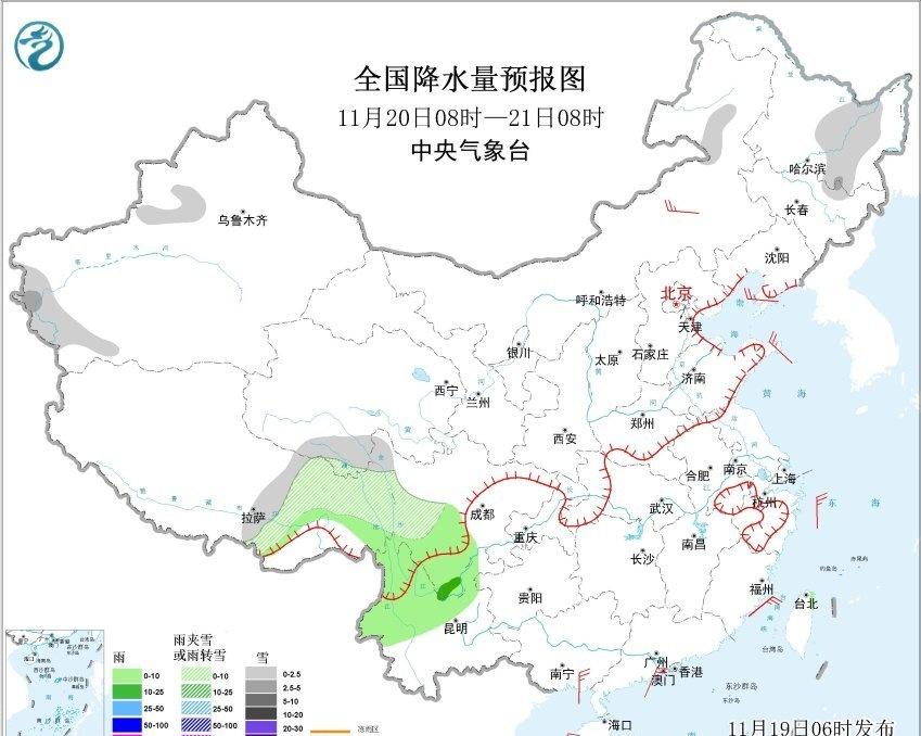 【雨雪缩减】昨天到今晨,南方还是出现了不少的降水,云南河口出现11月少见的暴雨。但今天随着干冷空气继续南下,降水继续缩减。今后7天,我国大部地区晴朗干燥,尤其是南方的干燥程度可能让不少人不适应。未来雨雪主要零散出现在云南、西藏、四川、甘肃、新疆、内蒙古、黑龙江等地。