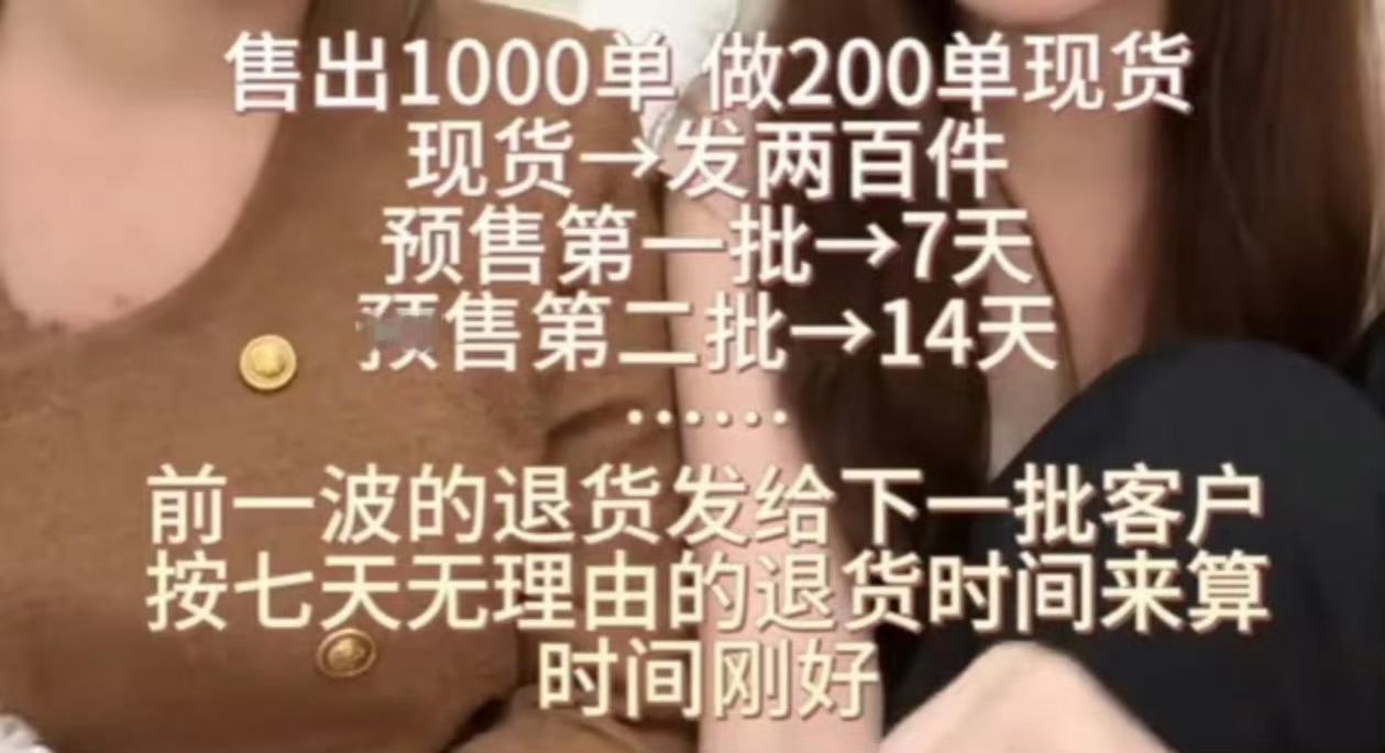 女装预售期动不动个把月,我以为是先收钱再生产,原来是因为女装退货率太高,卖了1000件只生产200,等退货回来的再给别的发,循环发……