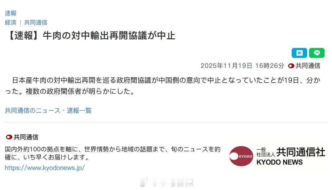 日媒:应中方要求,有关恢复日本牛肉对华出口的政府间谈判已经暂停。早前