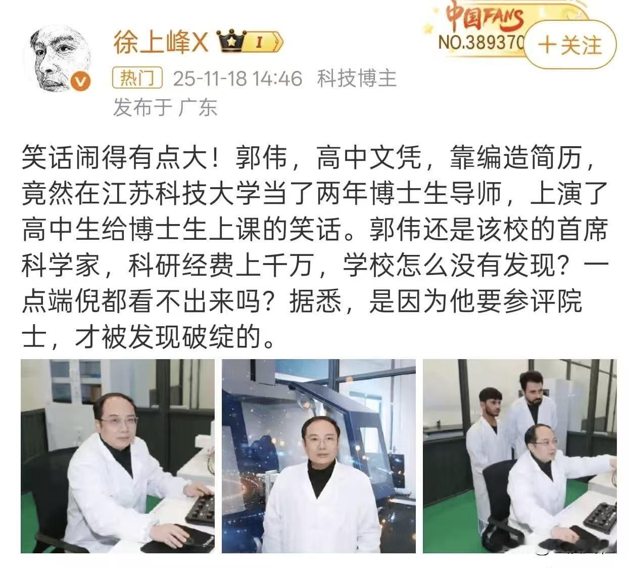 江苏科技大学这个笑话有点大!高中毕业生当了2年博士生导师,研究经费近千万,原来, 身份都是他自己给的。 什么学术论文,学历、学术头衔都是自己想出来的。 不知道当初2023年,伪造履历在江苏科技大学担任首席科学家、博士生导师长达两年(2023年入职,2025年事发),却没有被发现。 本以为这种高学历人才的入职审核是很严谨的。没想到却形同虚设。还不如我们这几十人的企业。 大家觉得发生这种事的原因是什么呢?