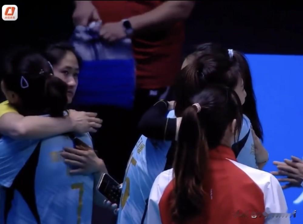 天津女排赛后哭声一片[流泪][流泪]!赢了河南女排后,天津女排队员们久久没有离场,大家在一起互相拥抱,老将王媛媛是最先哭的那一位,去抱了抱昔日的老搭档杨艺好长时间,一旁的孟子璇也流泪了,媛媛又去拥抱孟子璇,妹妹李盈莹没哭,她把小美君搂在怀里,鼓励她,然后又去安慰正在痛哭的王艺竹,这应该是这批队员在一起打的最后一场球了!姚迪、杨艺好像要退役了,媛媛和盈莹要去海外留洋,所以大家都有点触景生情!