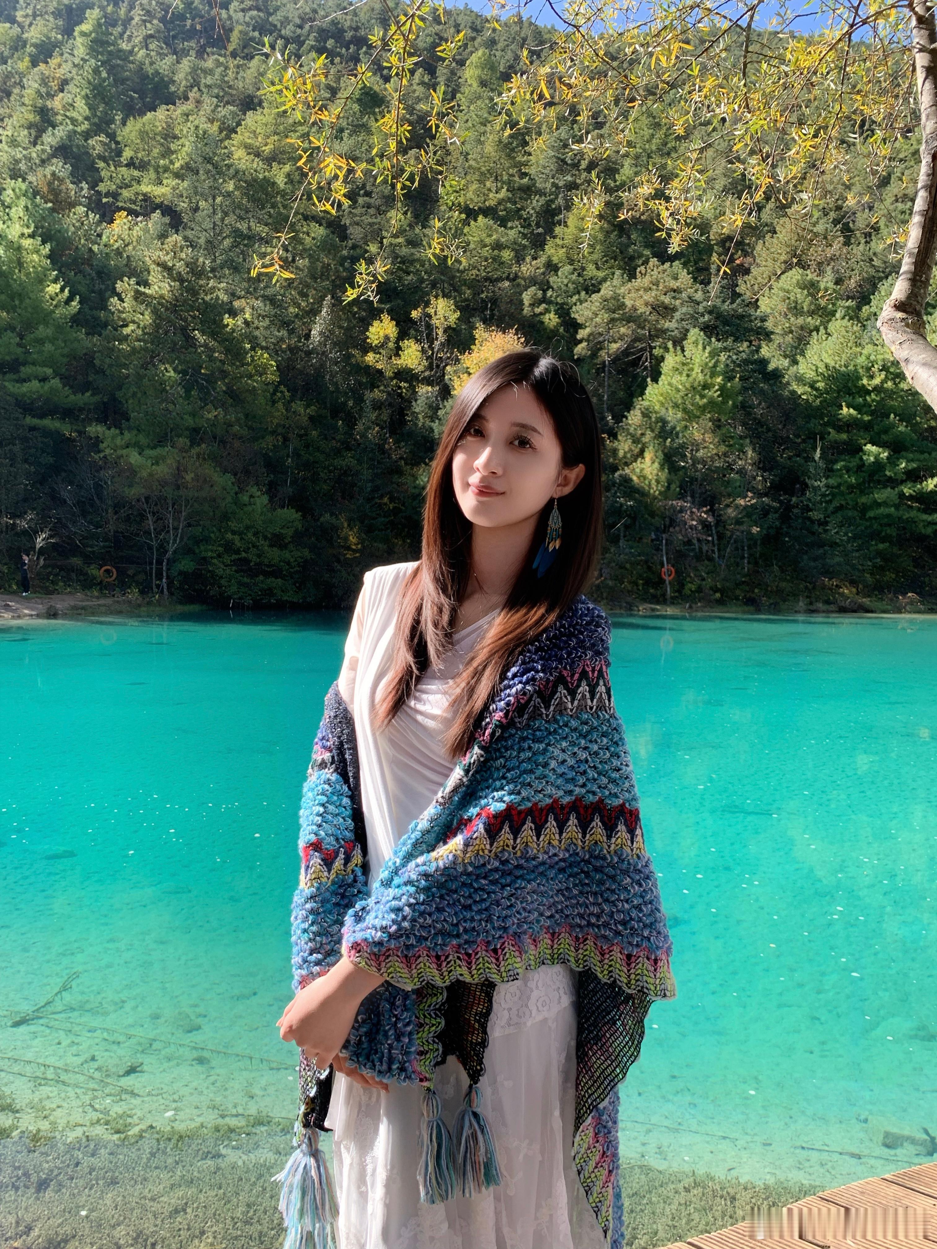 美图欣赏,看图写诗《丽人倚栏》亭亭玉立小栏边,淡扫蛾眉映碧天。不语含情