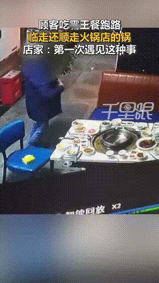 男子吃完霸王餐还把锅带走,店主:不付钱认了,锅端走不能忍:11月15日,重庆。一火锅店遭遇奇葩“霸王餐”,顾客消费200多元后未结账就溜走,临走时竟还将店里的火锅锅具一并顺走。店主表示,当时太忙了没注意到,不付钱都认了,锅端走了不能忍,已报警处理。
