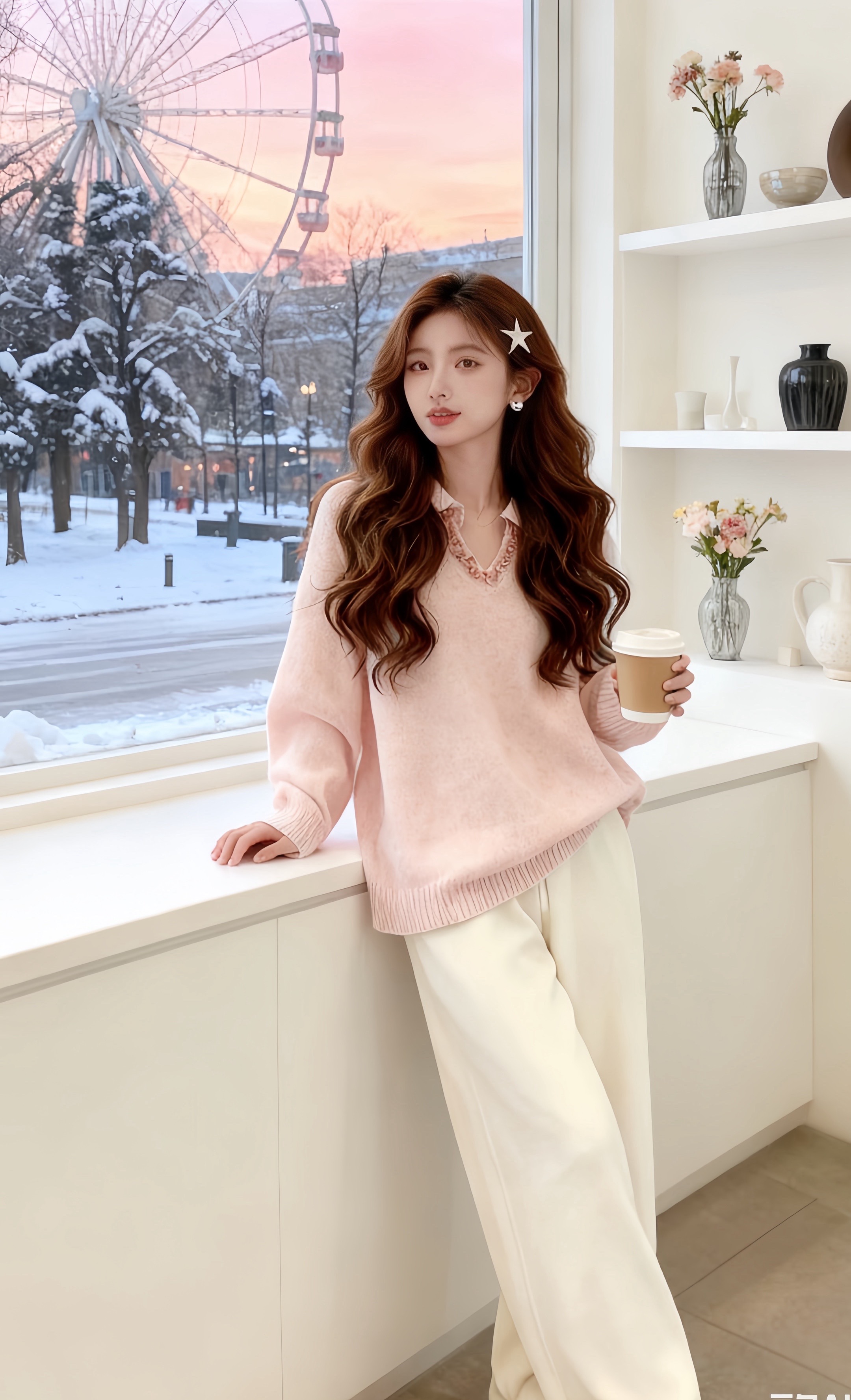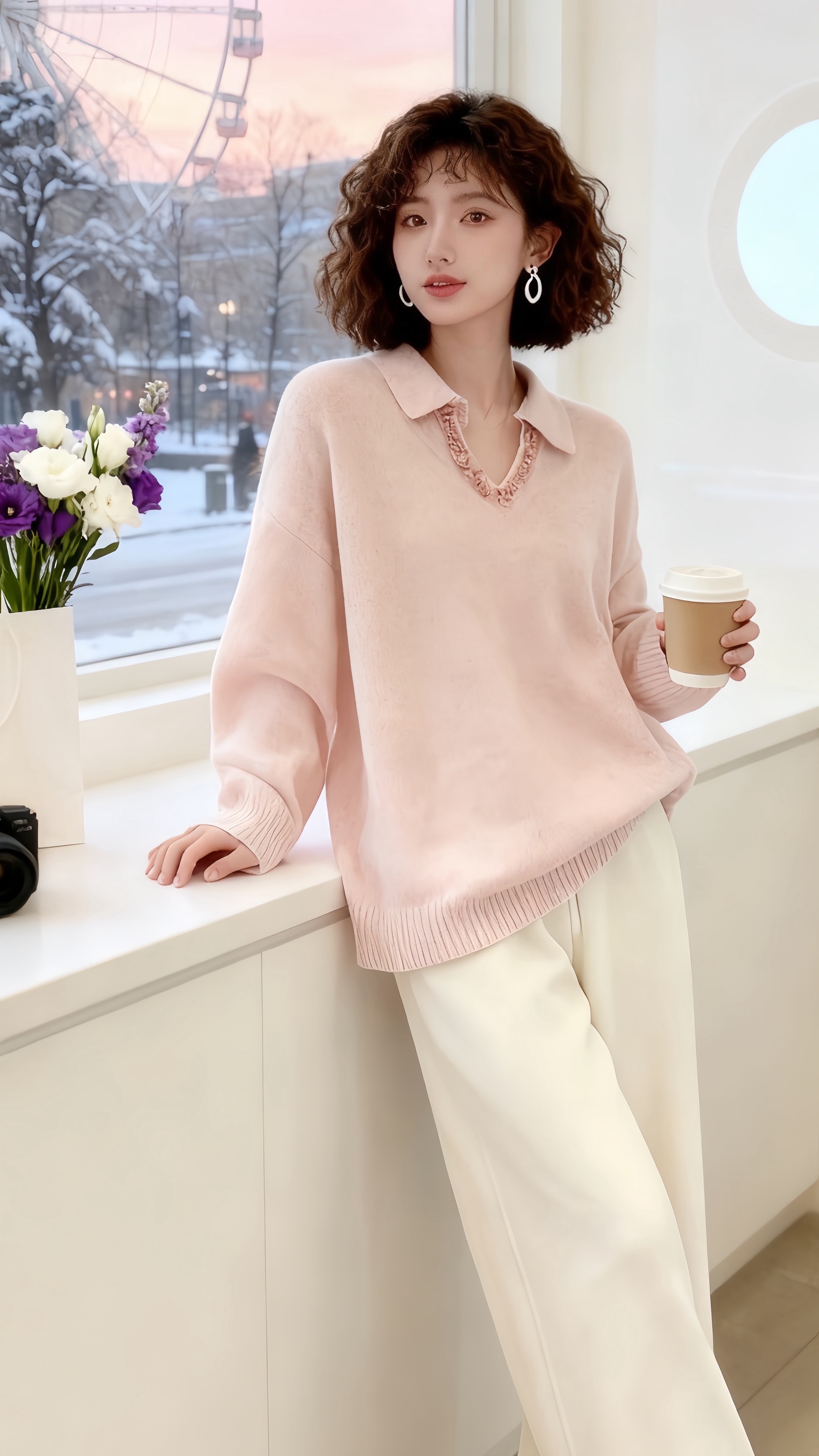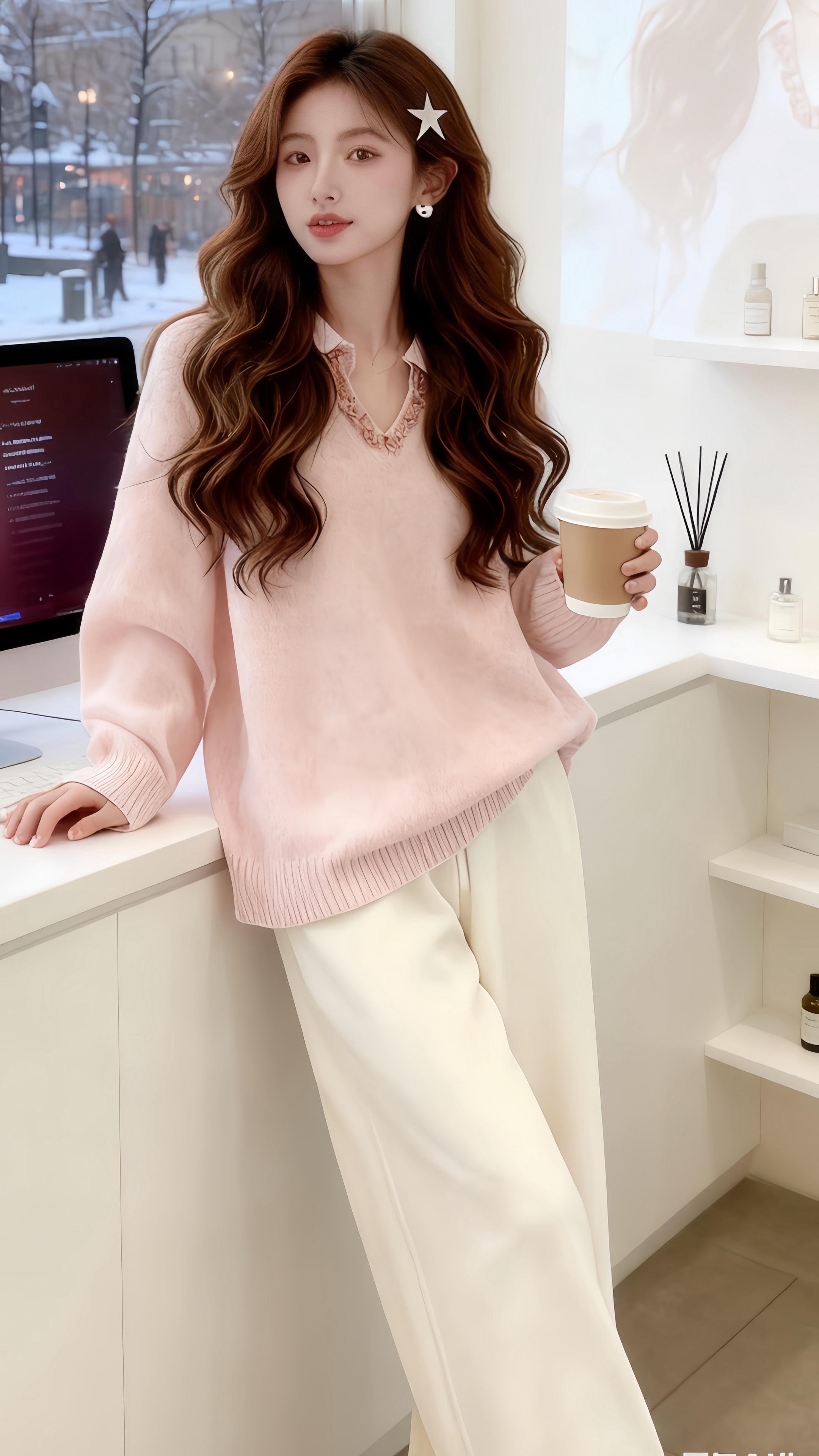 这件超级温柔的小香风针织衫,它是这种低饱和度的粉色,完全不会显黑,穿上...