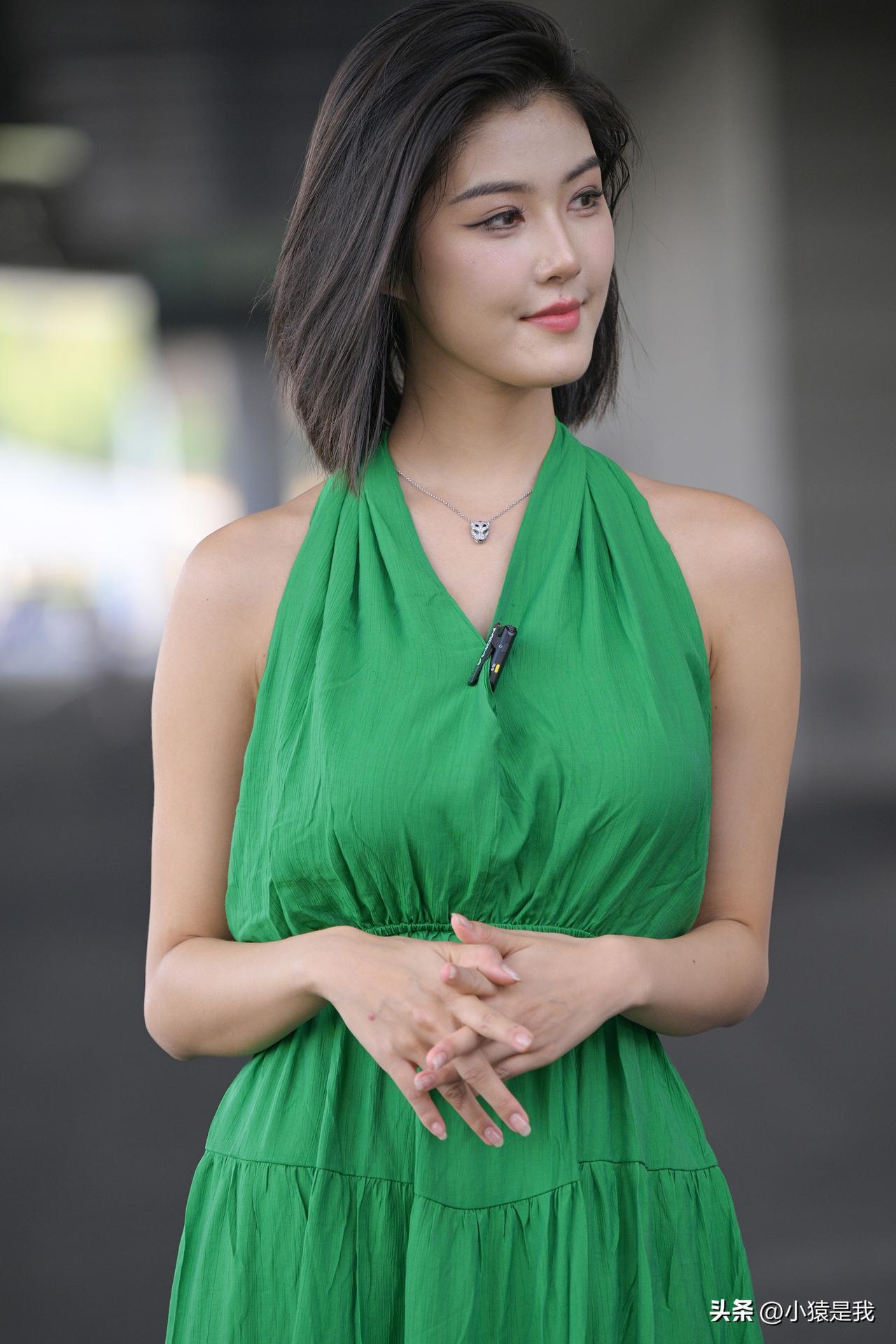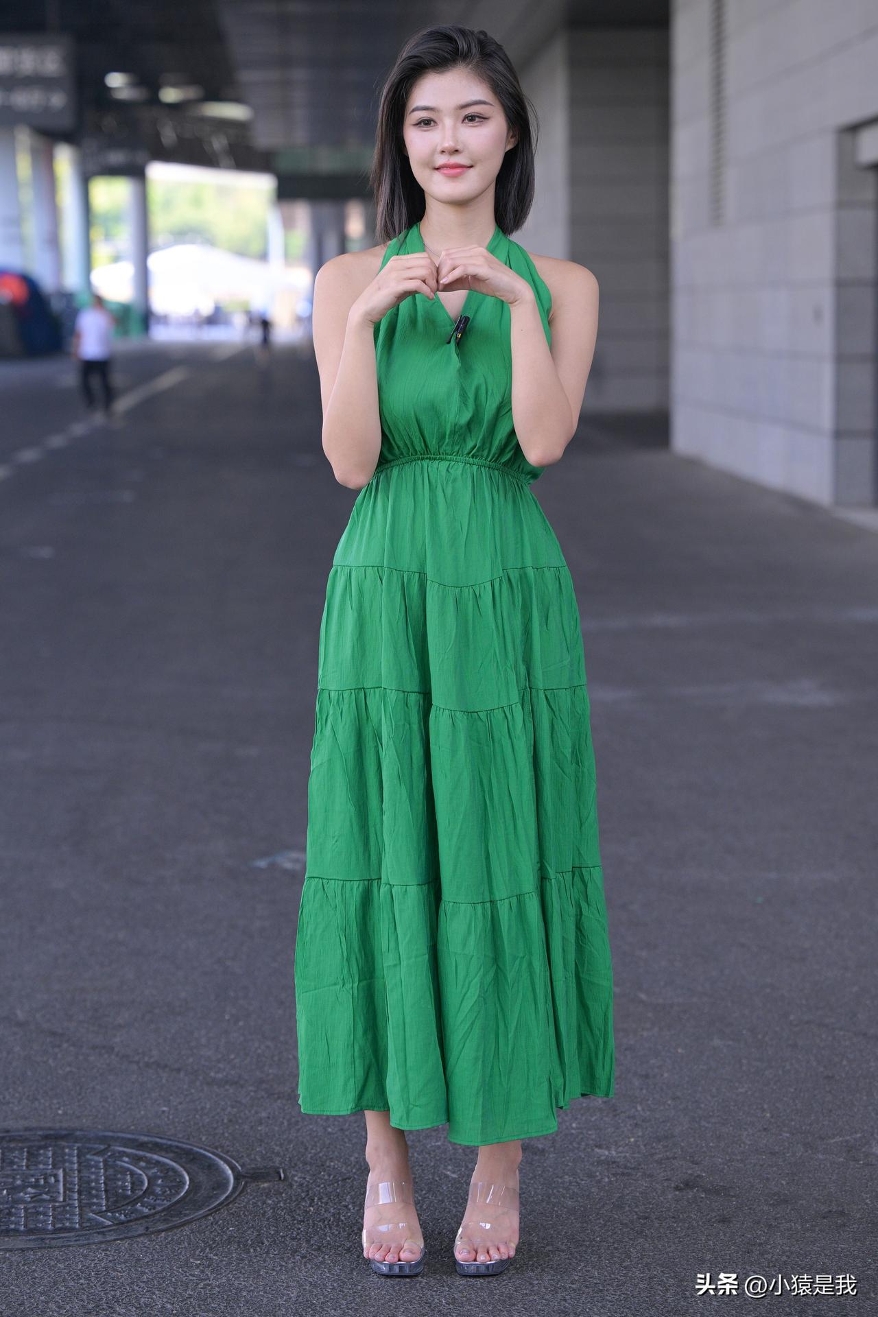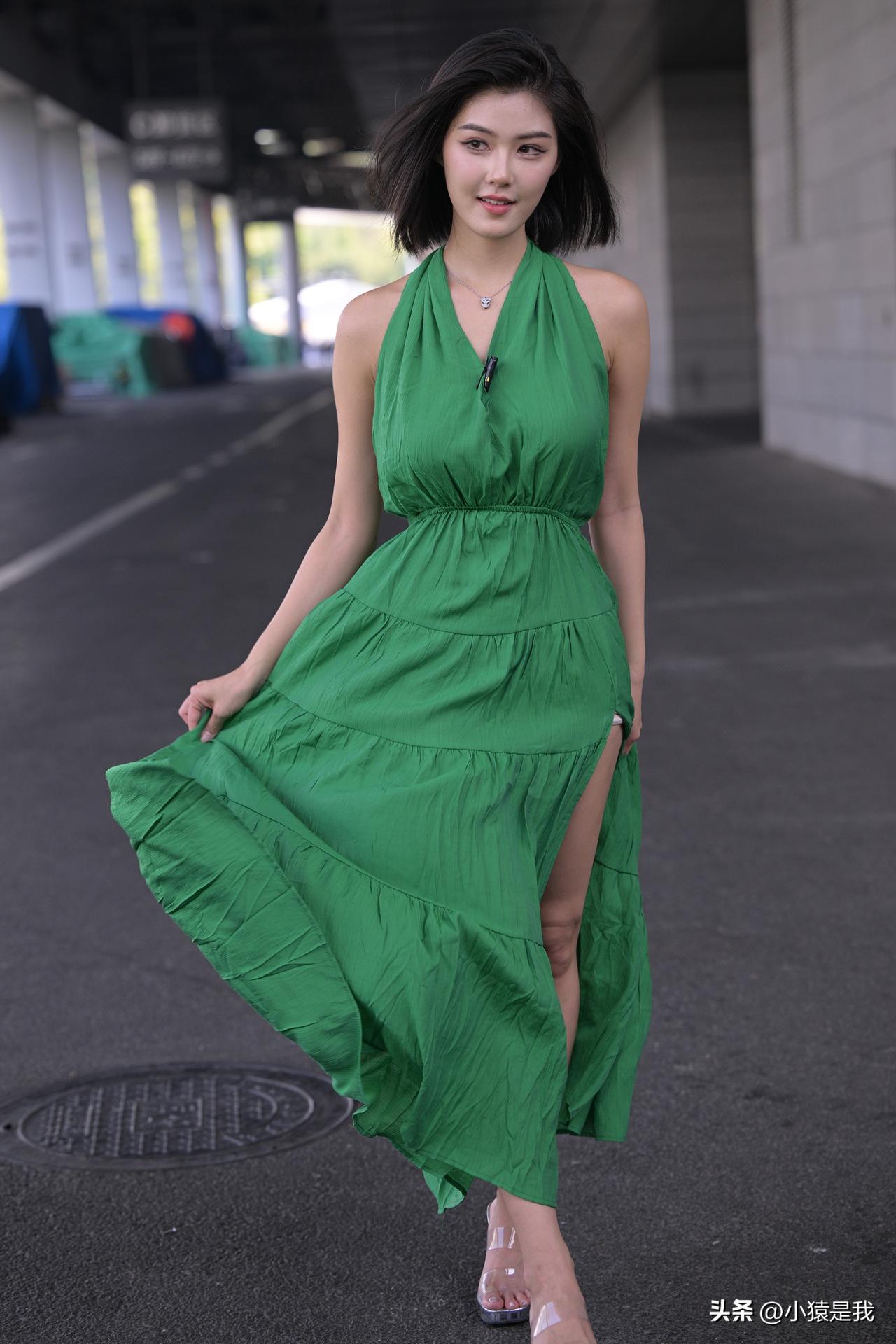 风从建筑的缝隙漫过来 绿裙便漾成流动的潮 脖颈挽着细带的温柔 开衩处,是步履轻掀