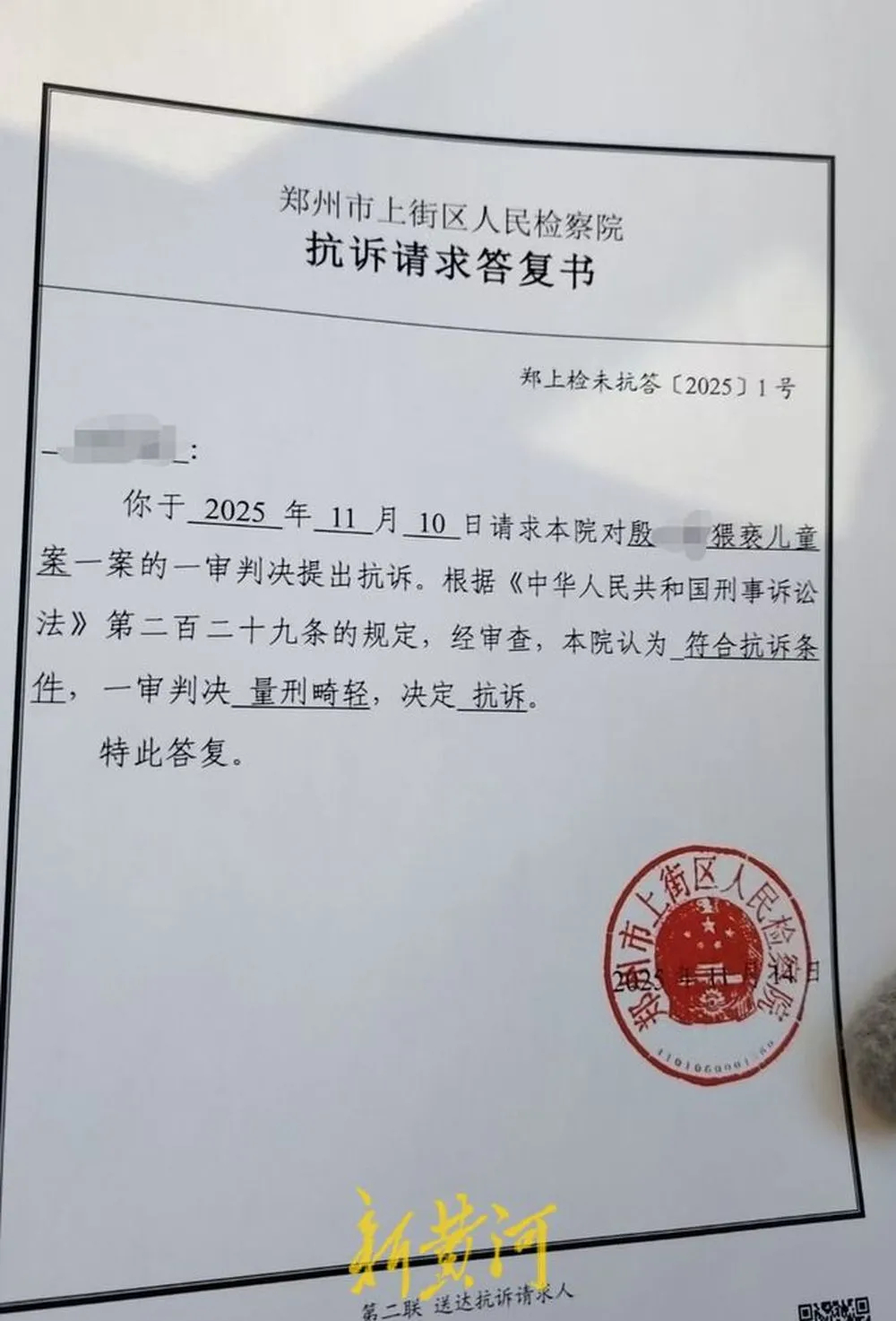 【60岁男子公共场所猥亵7岁女童一审获刑两年,女童母亲:量刑畸轻,检方已抗诉】“对方既有强奸犯罪前科,又是在公共场所当众猥亵幼童,情节恶劣,一审判其两年我们不服并申请检方抗诉,检方最终也认为量刑畸轻,决定抗诉。”11月19日,河南郑州市民王女士(化姓)告诉新黄河记者,其7岁女儿被60岁男子殷某某在公共场所当众猥亵一案,在法院一审判决对方犯猥亵儿童罪,判处有期徒刑两年后,经她向检方提请抗诉,郑州市上街区检察院已于近日作出抗诉请求答复书,认为“符合抗诉条件,一审判决量刑畸轻,决定抗诉”。据王女士介绍,今年2月4日,其7岁女儿携2岁弟弟在自家小区大门口玩耍时,遇到殷某某携其2岁孙子,此后殷某某带几人一起在小区内玩耍。“事发当天他(殷某某)把手伸进我女儿衣服里,我女儿回来告诉我,说有人把手伸进她衣服里抠她屁股,把她抠疼了,我得知后就报警了。”王女士表示,此事已对其女儿身心健康造成较大伤害,“她以前爱出去玩,现在也不爱出去了,在学校里下课也总是坐在自己位置上,晚上睡觉有时也会惊醒大哭,怎么哄都哄不好,以前都没有出现过这种现象。”11月19日,新黄河记者从王女士处获悉,其7岁女儿被猥亵一案经郑州市上街区法院一审开庭审理后,于11月6日作出刑事附带民事判决书,判决殷某某犯猥亵儿童罪,判处有期徒刑两年等。一审判决书显示,被告人殷某某,男,1965年出生,曾因犯抢劫罪、强奸罪被判处有期徒刑四年,于2016年2月刑满释放。判决书中,法院称经审理查明,今年2月4日,殷某某带孙子(2岁)在郑州市某小区大门口玩耍时,遇到被害人(7岁女童)和其弟弟(2岁)。殷某某让被害人带着弟弟一起到小区小花园玩耍,后殷某某坐在小花园亭子旁边的木凳上,让被害人站到其前面,用左手伸入被害人上衣内抚摸其肚子,后沿着肚子向下用手抠摸被害人下体,对被害人进行猥亵,被害人喊叫拒绝后,殷某某将手抽出。上述法院认为,殷某某猥亵儿童,其行为已构成猥亵儿童罪。鉴于殷某某猥亵不满12周岁的儿童,依法从严惩处;殷某某曾因强奸犯罪被判处刑罚,依法从严惩处;在公共场所当众猥亵儿童,依法从重处罚。“一审判决后,我们认为量刑畸轻,向检察院申请抗诉,检察院支持了我们的抗诉请求。”19日,王女士告知记者,她已收到来自郑州市上街区检察院的抗诉请求答复书,“答复书里,检方也认为一审判决量刑畸轻,决定抗诉。”围绕此案,陕西恒达律师事务所高级合伙人、知名刑辩律师赵良善指出,根据《中华人民共和国刑法》相关规定,猥亵儿童的,处五年以下有期徒刑。在公共场所当众猥亵儿童,情节恶劣的;造成儿童伤害或者其他严重后果的;猥亵手段恶劣或者有其他恶劣情节的,处五年以上有期徒刑。另据《最高人民法院、最高人民检察院关于办理强奸、猥亵未成年人刑事案件适用法律若干问题的解释》相关规定,“对儿童身心健康造成其他伤害或者严重后果的情形”以及“以生殖器以外的身体部位、物品侵入被害人生殖器、肛门等方式实施猥亵的”,应当认定为刑法规定的“造成儿童伤害或者其他严重后果”及“猥亵手段恶劣或者有其他恶劣情节”。(新黄河)