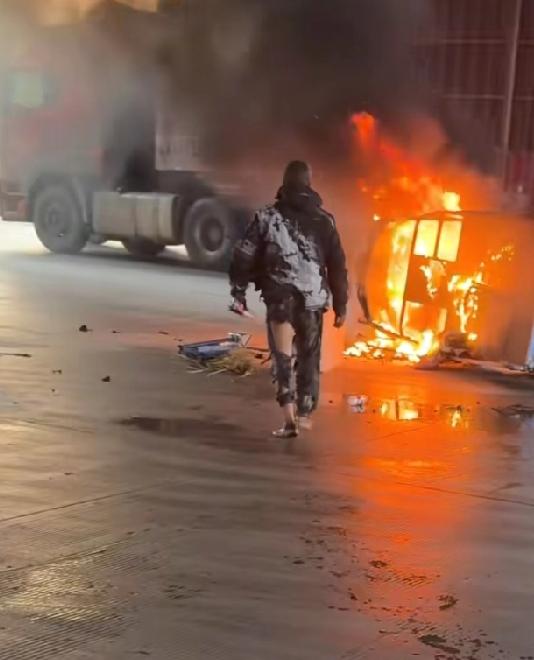 这肯定是被生活所迫到极致的劳动人民了。浑身上下都烧光了,还不忘记捡起生活的工具:秤和筐 三轮车突发大火,大爷全身着火从车上滚下来,还舍不得筐和秤拿下来。第一次看到电三轮着火!网络大了什么坏事都有,就是锂电也不会这样烧起来,这么晚爬出来,漏出来的皮肤严重,冬天厚遮住的地方应该要轻一点 最近老是这种车着火,前两天我们附近也是这样的车,把旁边电动车都给搞着火了,烧了十几辆
