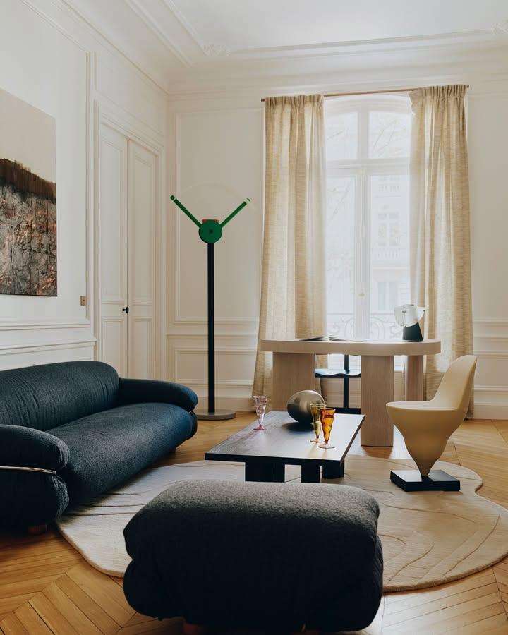 📸巴黎住宅的「反差美学」:柔和曲线的温柔,撞上大胆艺术的张力 。是大平层住着舒