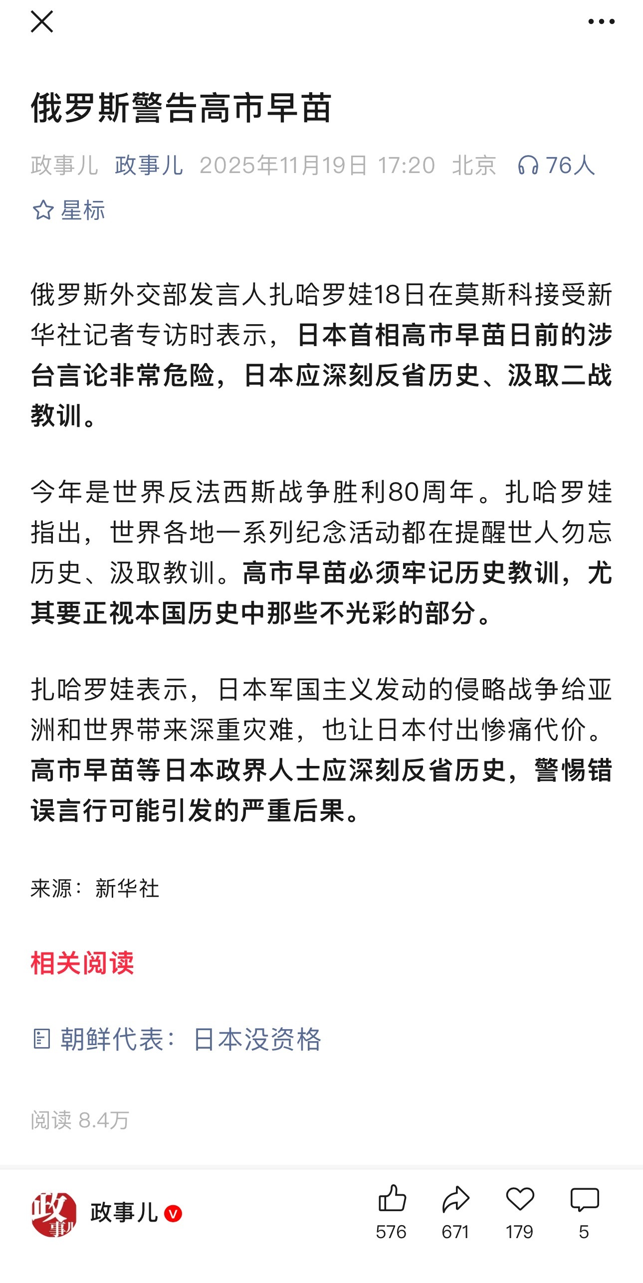 俄罗斯警告高市早苗
