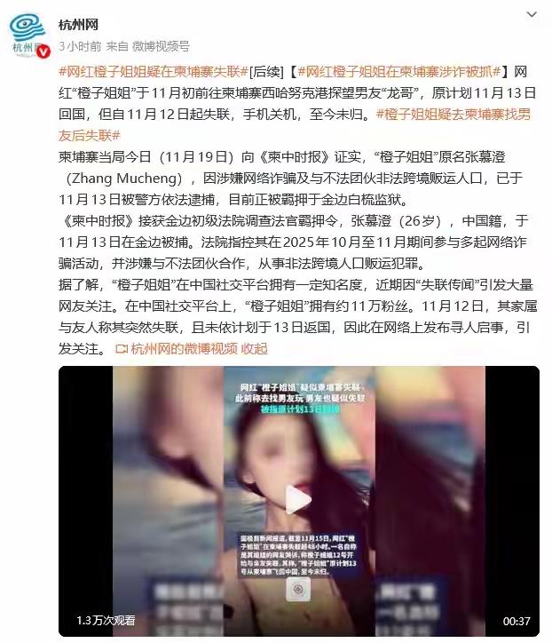 没有落入到坏人手里,嘎腰子。可爱美丽的橙子姐姐在柬埔寨失联,牵动了广大网友的心,家人也心急如焚,网上发布寻找信息。 还好还好,没有被嘎腰子,只是被柬埔寨以诈骗贩卖人口的罪名关进的监狱。柬埔寨的新闻报道得很清楚,在金边的白梳监狱羁押。 放心,柬埔寨的执法机关一定会保护橙子姐姐在柬埔寨的一切权益。 放心,橙子姐姐一定会安全的,早日归来。