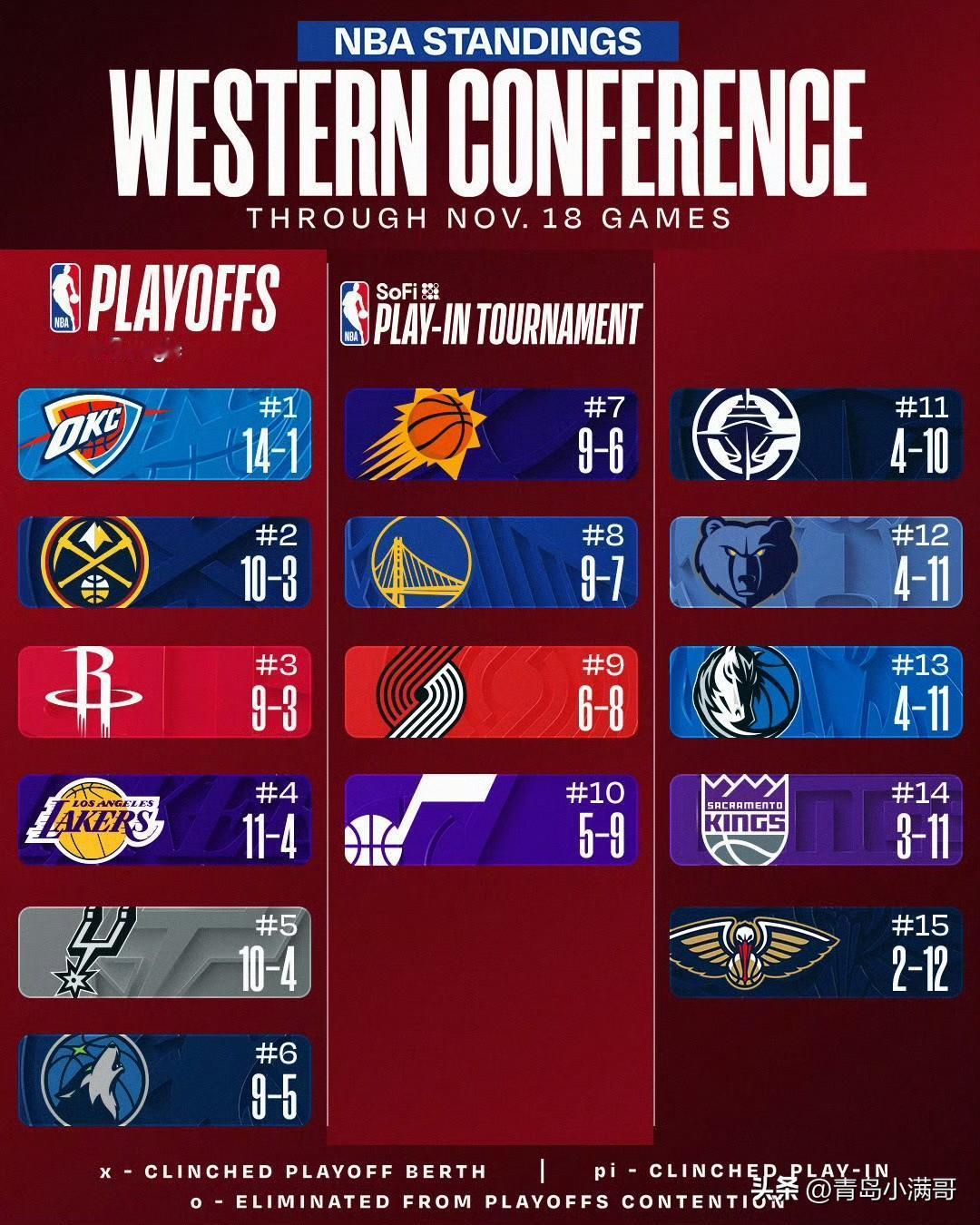 东西部最新战绩!!!湖人稳居第四,勇士降至第八! 北京时间11月19日,一天的比赛结束了,今天共有6场比赛,比赛不多,排名总体变化不大,一起来看一下吧! 东部方面: 活塞胜老鹰,拿下11连胜继续领跑东部,他们也将老鹰推到了第五名,尼克斯躺赢第四; 凯尔特人战胜篮网,他们升至第九,魔术也赢球了他们继续第十,这样雄鹿就掉出了附加赛; 西部方面: 太阳战胜开拓者,太阳第七,开拓者继续第九,灰熊不敌马刺,马刺继续保持第五; 湖人大胜爵士继续保持第四,勇士不敌魔术排名第八。 明天将有九场比赛,又是很关键的一天,湖人明天放假,最近几天都没有湖人的比赛了,下一场比赛直接到了下周一,勇士明天需要背靠背打热火,记得关注哦! 湖人赛程 NBA实力榜 nba实力榜 西部nba排名 勇士赛程 湖人
