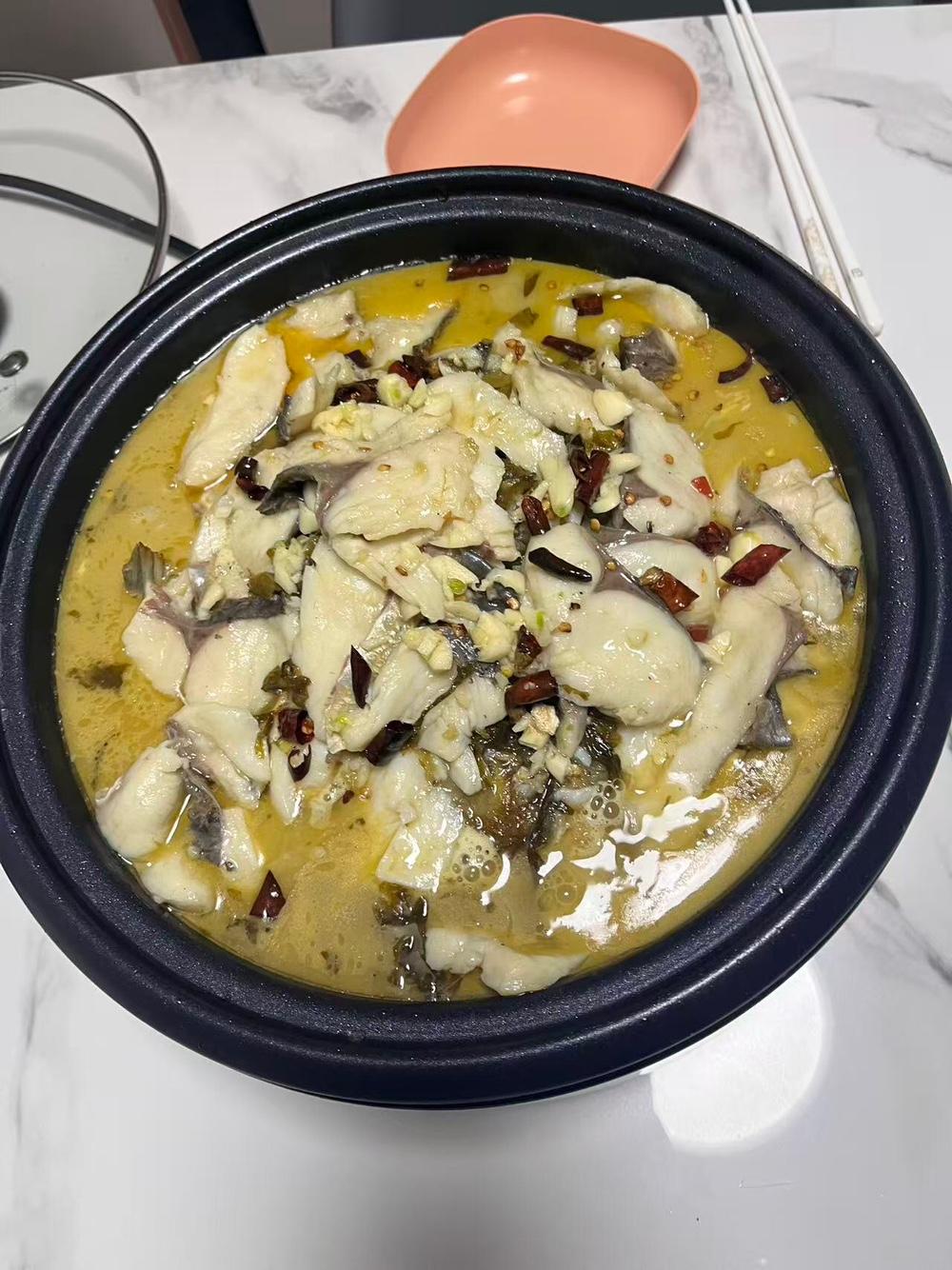 今天可算有口福了! 老公下厨整的这锅酸菜鱼,一上桌香味就钻鼻子里——嫩白的鱼片浸在酸汤里,裹着酸菜的鲜味儿,嚼一口又滑又嫩,辣度刚合适,连汤都想泡饭![笑哭] 他说鱼片是提前用淀粉抓过的,难怪这么Q弹,干辣椒和蒜末一泼香得不行。 这锅端上来还咕嘟着小泡,热乎劲儿裹着鲜味,直接给我香迷糊了,连吃两碗饭都没够![呲牙] 家常菜酸菜鱼 酸菜鱼