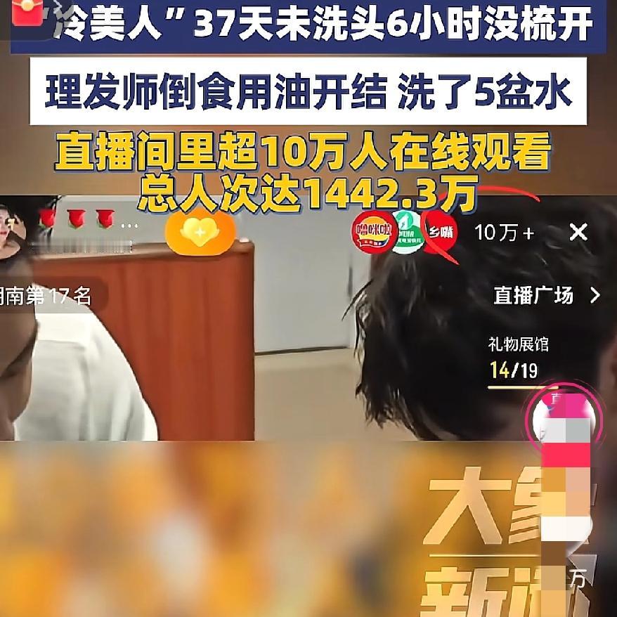 冷美人37天未洗头 6小时没梳开 昨天晚上那一场直播盛宴,直播间超10万人次在看她洗头,总人数达1442.3万,不愧是新晋流量女王呀。 据托尼老师说,这是他有史以来见过最难梳的头,光护发素都用了好几瓶。最后用了食用油,换了好几盆水,耗时5个多小时才把头发给护理好。 直播整个过程她都在跟网友交流,说话还是温温柔柔,跟她冷美人的冷一点也不搭边儿,真的是一个情商好高的女性。 估计再过几天她就完全养好了,希望他以后直播能够多给我们带来一些好的产品吧,千万别塌房呀,你是从哪里知道的她呢?冬天洗头 美发人直播 冷制洗发 彩票排列五有没有规律 张家界七星山骆驼杯荒野求生