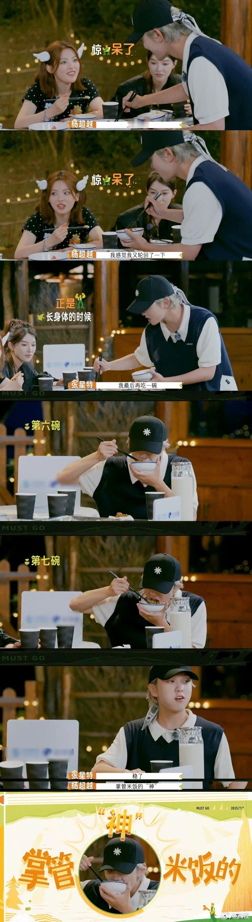 看到张星特的饭量我惊掉下巴!从第一碗到第七碗行云流水,最后那个委屈巴巴求加饭的表情简直经典~建议节目组直接给他配个饭桶,这干饭实力谁看了不说声绝!