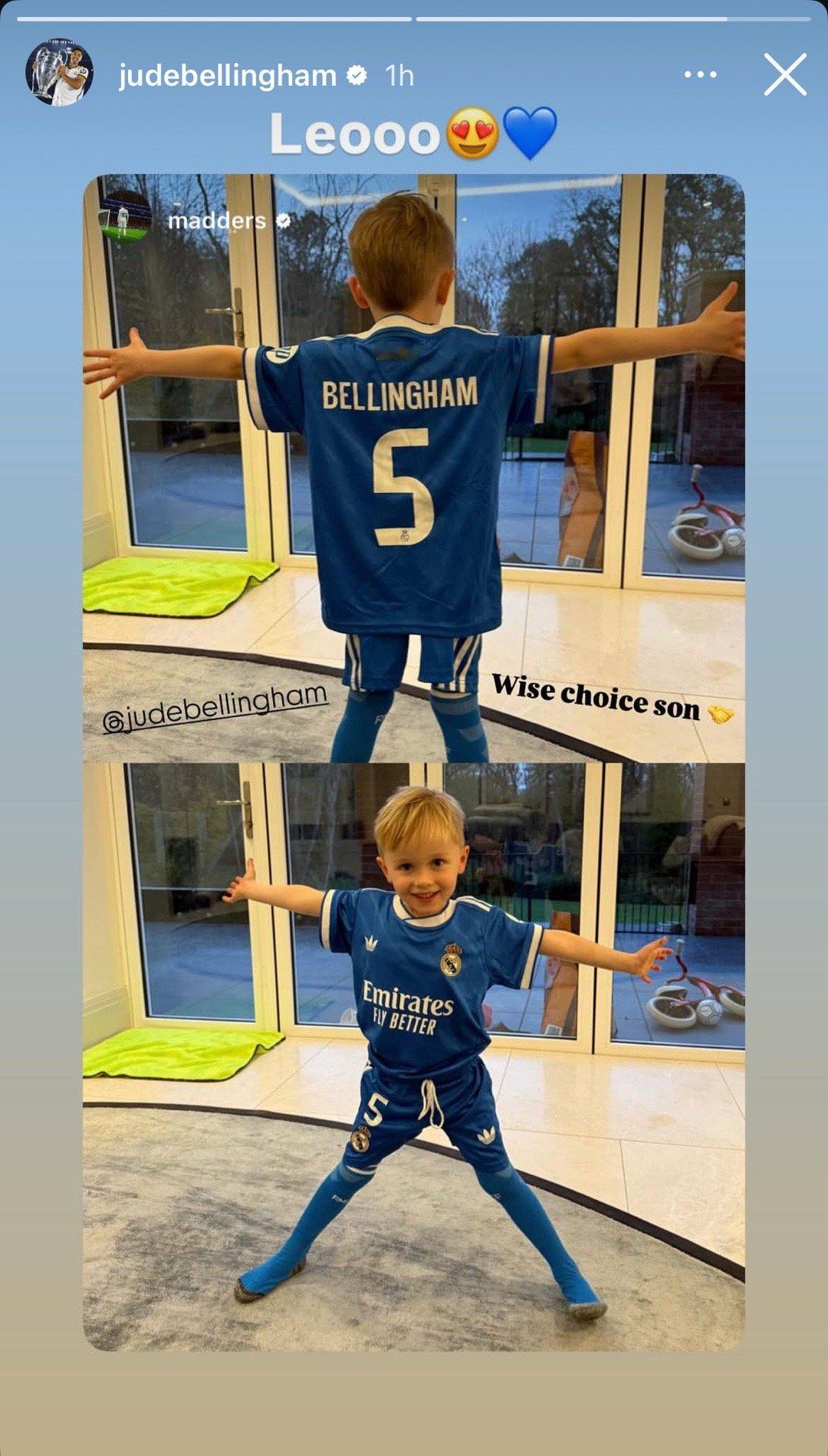 麦迪逊的儿子也是贝林厄姆的球迷
