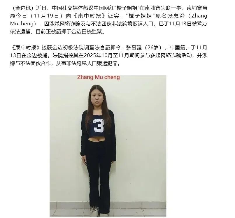 柬埔寨失联的网红“橙子姐姐”找到了 好像不是被骗去园区才失联,是想骗别人去园区被jc抓了才失联的真实案件 热点新闻事件