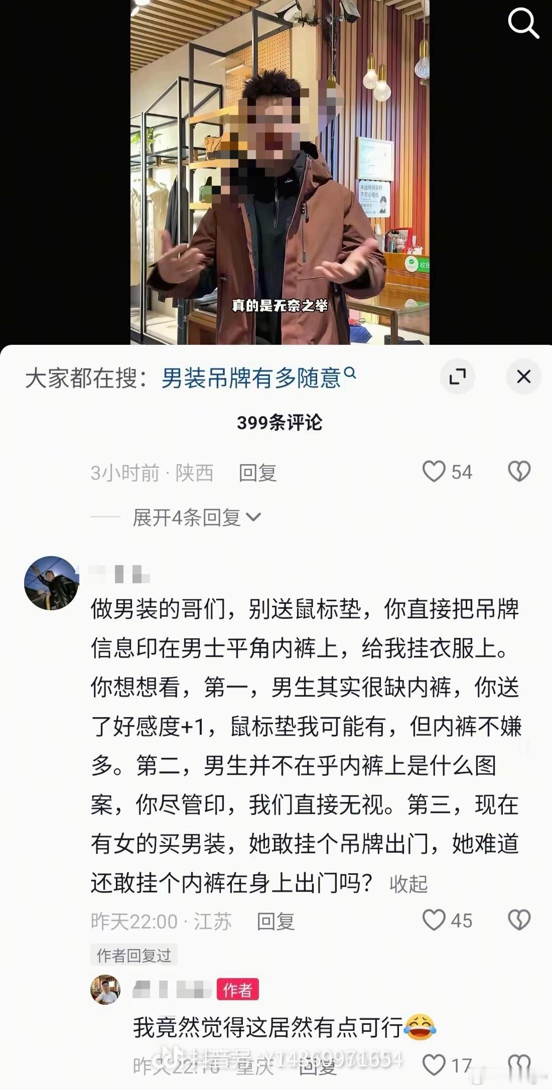 为什么现在的女装吊牌比脸都大?更有在衣服上挂密码锁的[捂脸哭]而男装就是正常吊牌