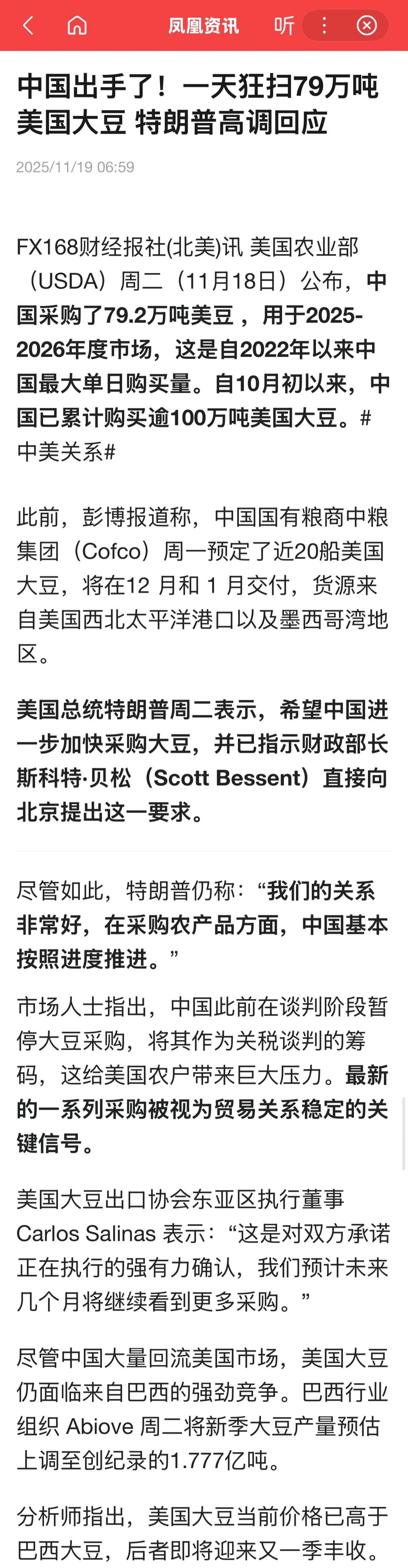 亚洲贸易商称,美国大豆的报价虽然高于巴西,但中国仍采购美国大豆,“已不再是善意姿态,而是履行釜山协议条款的体现。”