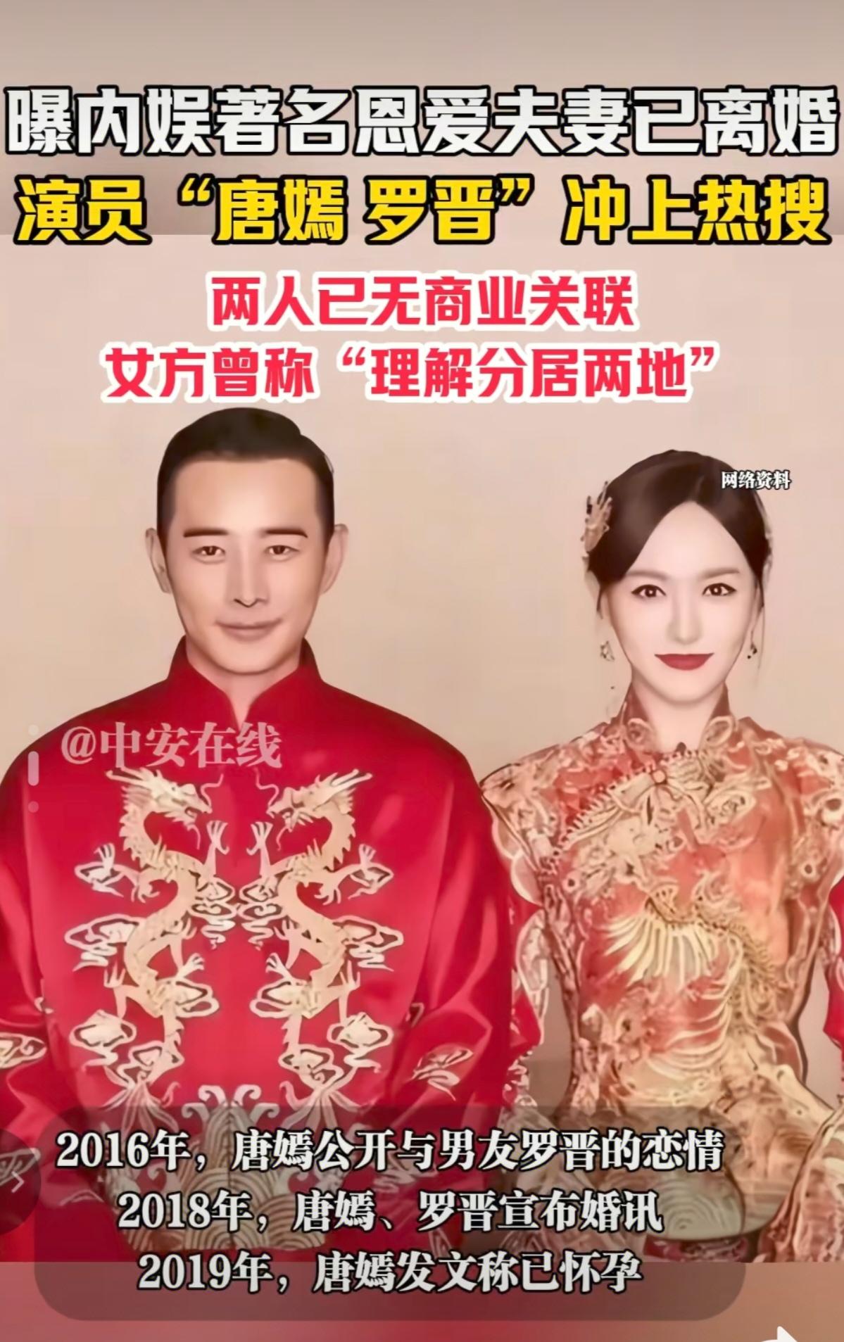 唐嫣罗晋婚变传闻引热议,真爱粉盼这对神仙眷侣别让遗憾上演 近日,“唐嫣罗晋婚变”话题冲上热搜,网友猜测这对曾是内娱恩爱标杆的夫妻或感情生变。 二人2016年公开恋情,2018年官宣结婚,2019年唐嫣官宣怀孕,过往多次公开表达对彼此工作的理解。但近期却传出“分居一年半”“已离婚”的消息,双方至今未回应传闻。 作为他们的忠实粉丝,我真心希望这对我磕了多年的神仙眷侣别让遗憾上演,期待他们能打破传闻,继续幸福下去。罗晋 唐嫣夫妇