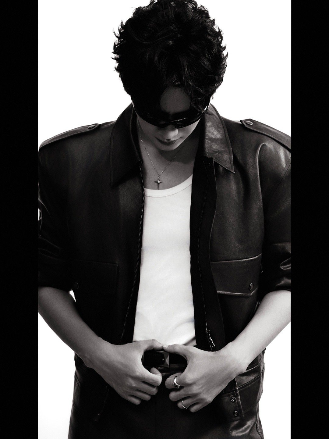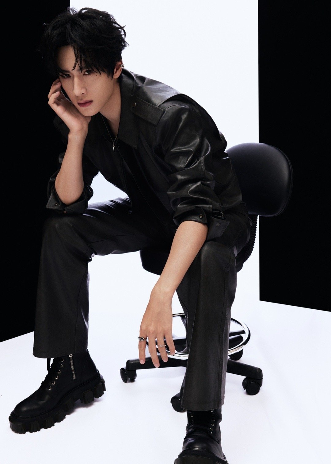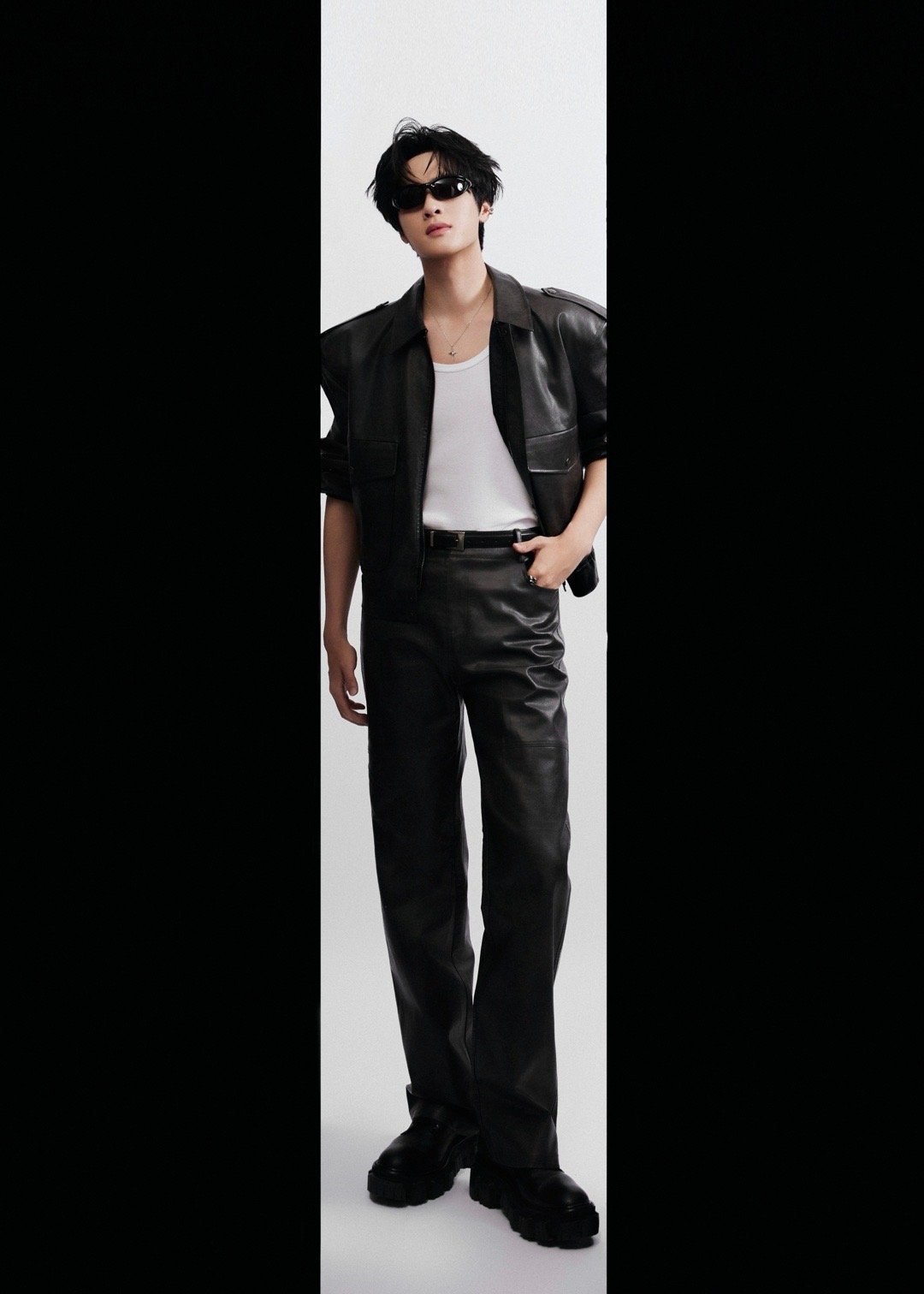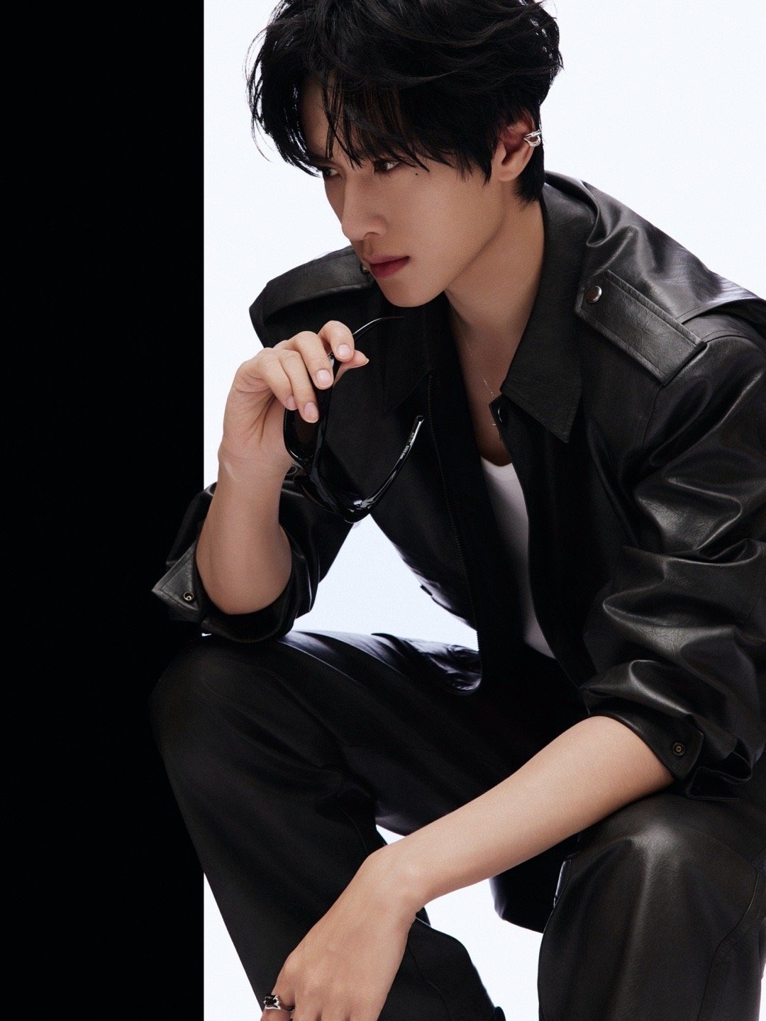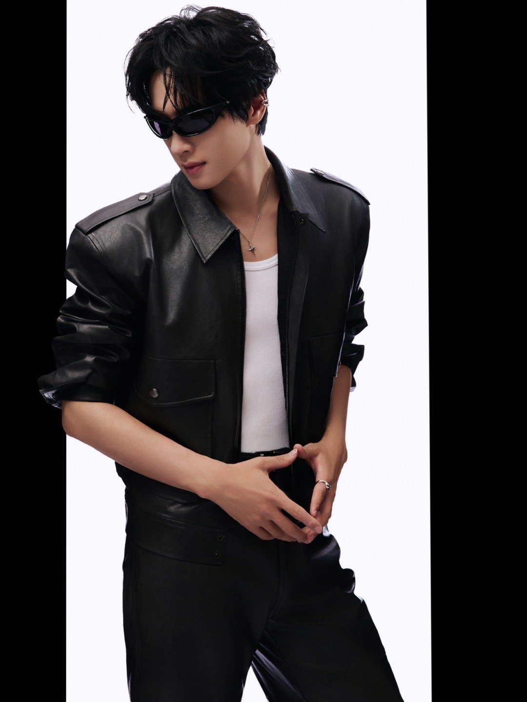 展轩 × 造型大片,一袭 Al'emoti 皮革套装出镜,优雅黑白光影,尽显摩登利落型格📸😎