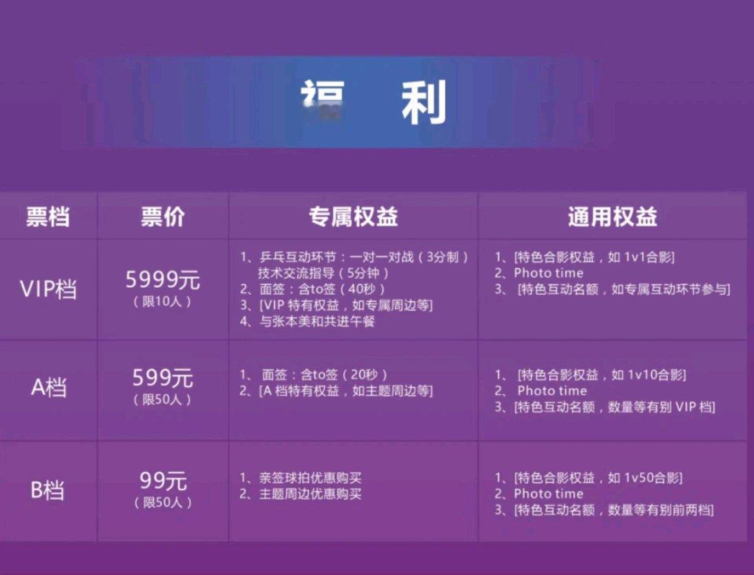 真是不明白,啥样的人会花5999元与她共进午餐! 11月11日,成都高新若水居乒乓球俱乐部发布消息,称将于12月8日举办张本美和见面会,并公布了活动球迷福利和对应的票价。票价分为三个档次,分别为VIP档5999元(限10人)、A档599元(限50人)、B档99元(限50人)。 其中VIP档可以和张本美和一对一对战(3分制)、技术交流指导、共进午餐、1V1合影等。5999元的票价,引发了好多球迷的不满,还有人进行了投诉。 可能有些人不知道,张本美和就是张本智和的妹妹,今年才17岁。 不过就在今天上午,有四川的网友发消息,称张本美和的见面会取消了。俱乐部也删除了见面会的相关内容,这可能跟最近高市的言论有关系。 对此,有网友表示,花5999元一对一打个三分制,估计一分钟就完事了,有这么多钱,请个私教都可以赔几天呢。不知道什么样的人,会花这么多的钱与她吃饭合影,估计吃饭还得自己花钱,这真是把球员当摇钱树了。 体育圈怎么成这样了,为了赚钱不择手段,商业色彩太浓了,让人感觉很怪,而且还是一个日本人。张本美和见面会的取消,好多网友拍手叫好。 不过也有部分网友认为,人家明码标价了,有人消费也是自愿的。