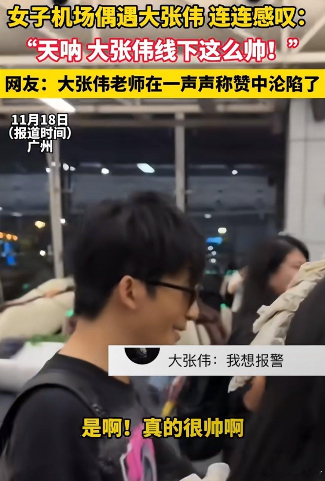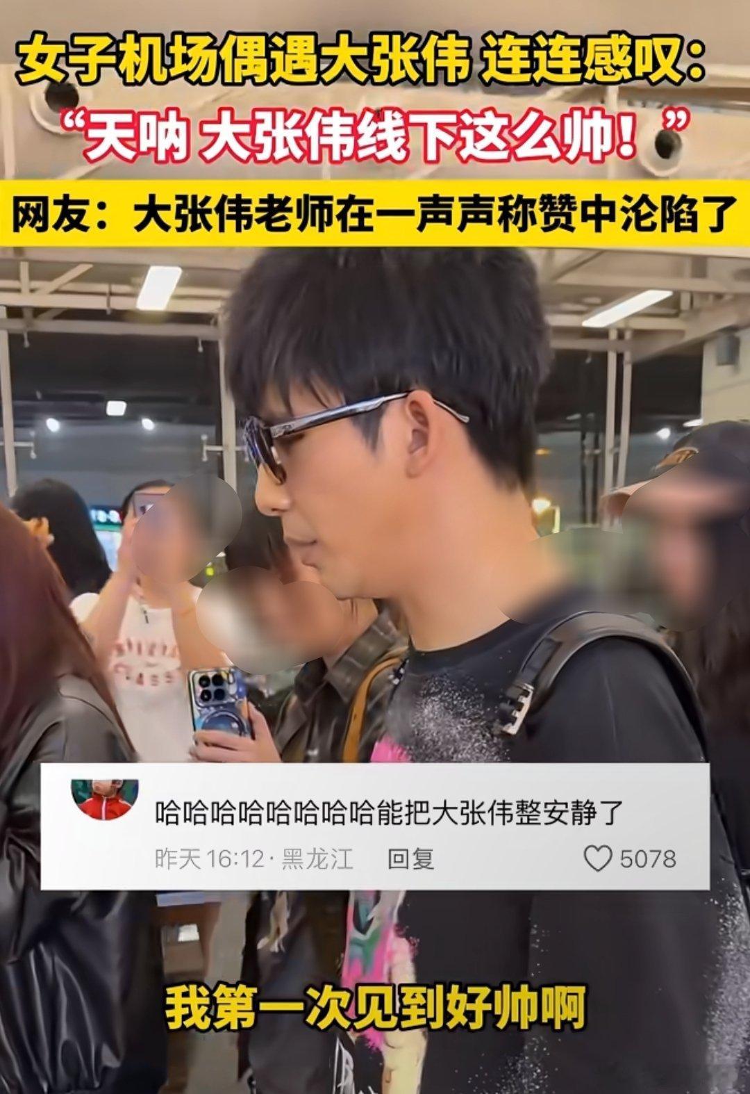 网友机场偶遇大张伟,连连感叹线下的他太帅了,把大张伟整安静了