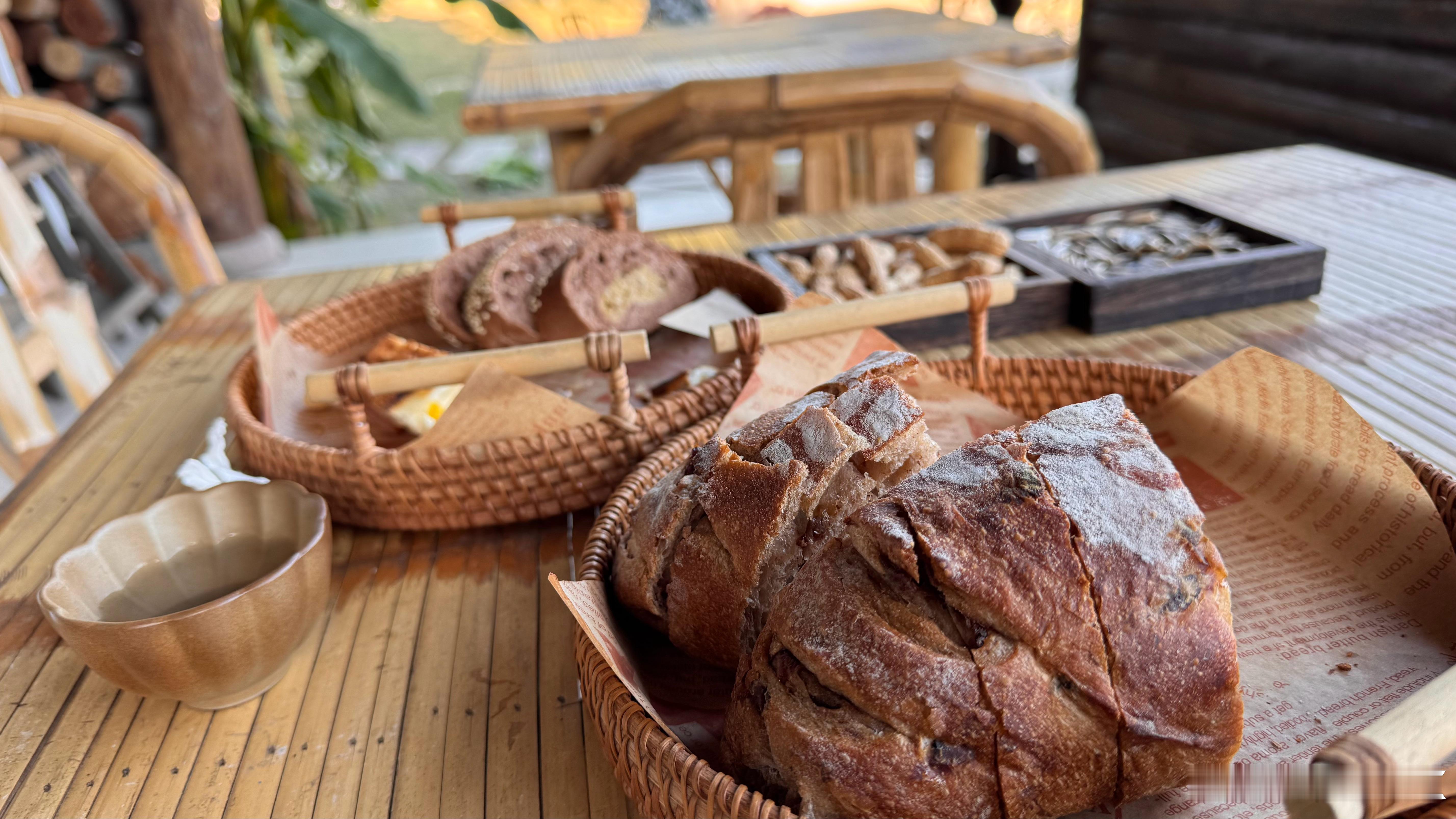 我在山沟里的度假村一处正在施工的工地内找到一家可以亲手给自己烘焙面包的面包店还是最传统的柴火慢烘如果面包冷了,就回炉加热栗子包的栗子就在背面的山后种鲜花包的馅从云南运过来的鲜花(非预制)最关键是味道超棒!