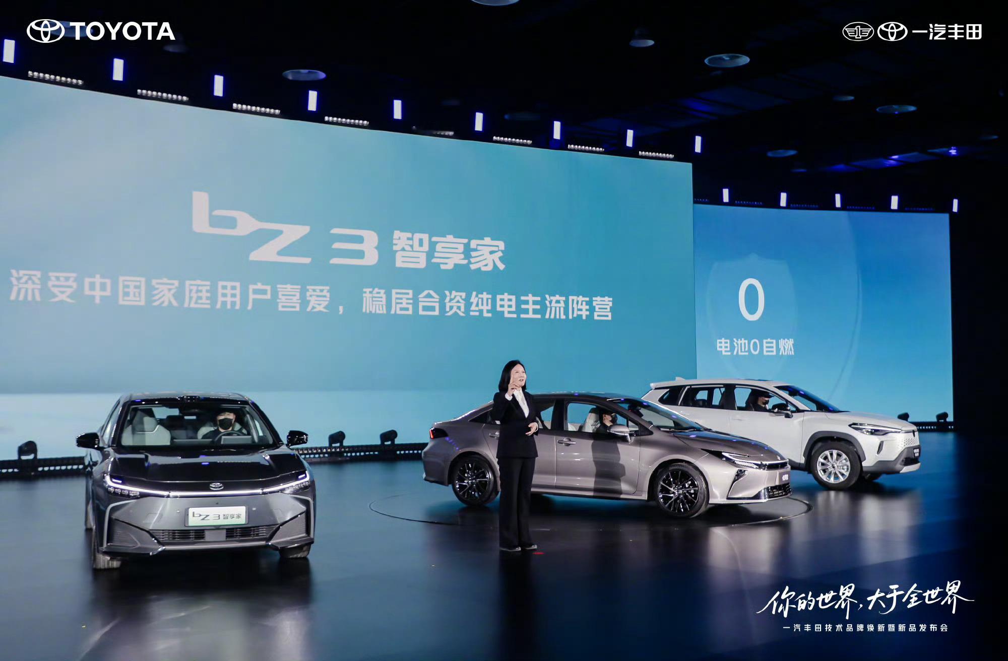 三个新车同台亮相池,都是准备走量的车型⭐第六代RAV4荣放◦ 设计多元且风格鲜明:提供核心、硬派、运动三种设计风格。硬派风格的Woodland版有全地形轮胎,离地间隙增加13mm;运动风格的GR Sport版配20英寸轻量化轮毂,红黑撞色设计很吸睛。◦ 动力全面电气化:告别纯燃油版本,提供2.0L混动、2.5L混动等选择,还有PHEV插电混动版,其输出功率达320马力。混动系统优化后加速更轻盈,四驱版本保障不同路况的通过性,契合其越野基因。◦ 智能与实用兼具:搭载Arene软件平台,配10.5英寸液晶仪表和最大12.9英寸中控屏,还有TSS 4.0主动安全系统,能实现驾驶员异常时自动靠边停车等功能。⭐新卡罗拉◦ 尺寸与外观焕新:轴距加长50mm达2750mm,车身尺寸471017801435mm,空间更宽敞。外观采用锤头鲨造型,C字形前灯组搭配贯穿式熏黑尾灯,前脸进气口与灯组融合,还有两款新造型铝合金轮辋。◦ 动力新增且效能升级:在1.8L混动基础上新增2.0L燃油动力,2.0L发动机最大功率126kW。1.8L混动搭载第五代THS智能电混双擎,油耗低至4.13L/100km,续航超1000公里,兼顾动力与经济性。◦ 内饰与智能配置升级:内饰换用双层中控台设计,配备12.9英寸悬浮中控屏和8.8英寸液晶仪表。全系标配Toyota Pilot驾驶辅助系统,还有疲劳驾驶监测、车道偏离警示等功能,用车安全性大幅提升。⭐全新bZ3(智享家)◦ 外观新潮且风阻优化:延续bZ系列设计,封闭式前脸搭配贯穿式LED日行灯,溜背车身配悬浮式车顶和隐藏式门把手。新增黛云翠车色,车尾贯穿式点阵尾灯与前脸呼应,整体风阻表现出色。◦ 智能驾驶配置:搭载momenta5.0智能驾驶辅助系统,配备32颗智能感知硬件,含1个激光雷达和5个毫米波雷达,还支持ILLPP记忆泊车功能,搭配TSS智行安全系统,驾驶安全性与便利性拉满。◦ 内饰舒适且三电可靠:环抱式座舱配15.6英寸中控屏与元宝AI语音助手,还有多色氛围灯和PM2.5负离子发生器。基于e-TNGA架构打造,搭载磷酸铁锂刀片电池。