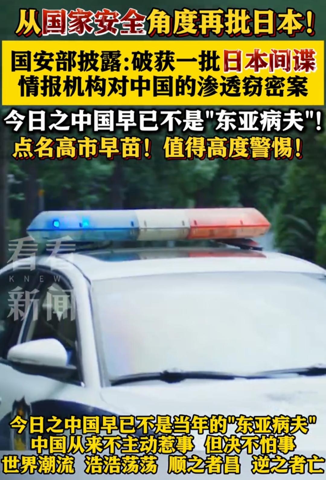 在中国的日本间谍不在少数,一经查证,是日本人,立即枪毙,是中国人,剥去中国国籍,驱逐出境。对待日本这个野心不死的国家必须有100%的警惕。国人切勿贪图小利购买日货进行贸易,他赚取我们的每分钱都在制造武器侵犯我们,国人切勿忘记祖軰多少人死在回軍刀枪之下。切勿当不孝子孙。全民发动,人人参与,反间防谍,守护国安。