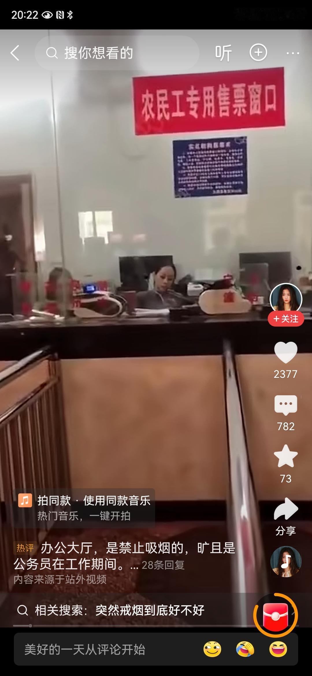 售票员边看手机边抽烟,长得还挺漂亮,果然是漂亮的人胆子大啊。别着急骂,应该过去买票,看看她服务态度咋样。如果她服务周到,热情,有耐心,她抽烟就抽吧,反正她在玻璃里面抽,外面也闻不到。如果她爱答不理,推三阻四,那就投诉她抽烟,比投诉服务差管用。服务差没标准,还容易被说成一个巴掌拍不响;抽烟就清晰多了,车站肯定是禁止吸烟的,又是工作时间,一告一个准。有人说,这样的女人是真性情,反倒有人情味儿,能把顾客当人。你们觉得是这样的吗? 女性抽烟 女孩抽烟 烟民看过来美女 抽烟姿势 地铁扶梯抽烟 地铁口吸烟 高铁抽烟 火车吸烟 高铁拦烟酒 站台烟民 高铁站售票员 列车抽烟 火车上吸烟 高铁吸烟男 烟摊美女 最帅售票员 地铁吸烟 抽烟老太太 火车吸烟区 卡车售票员