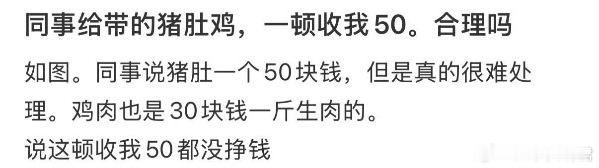 同事给带的猪肚鸡,一顿收我50,合理吗❓