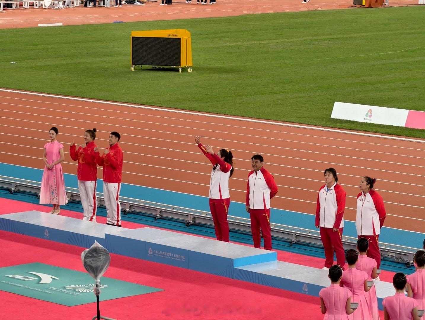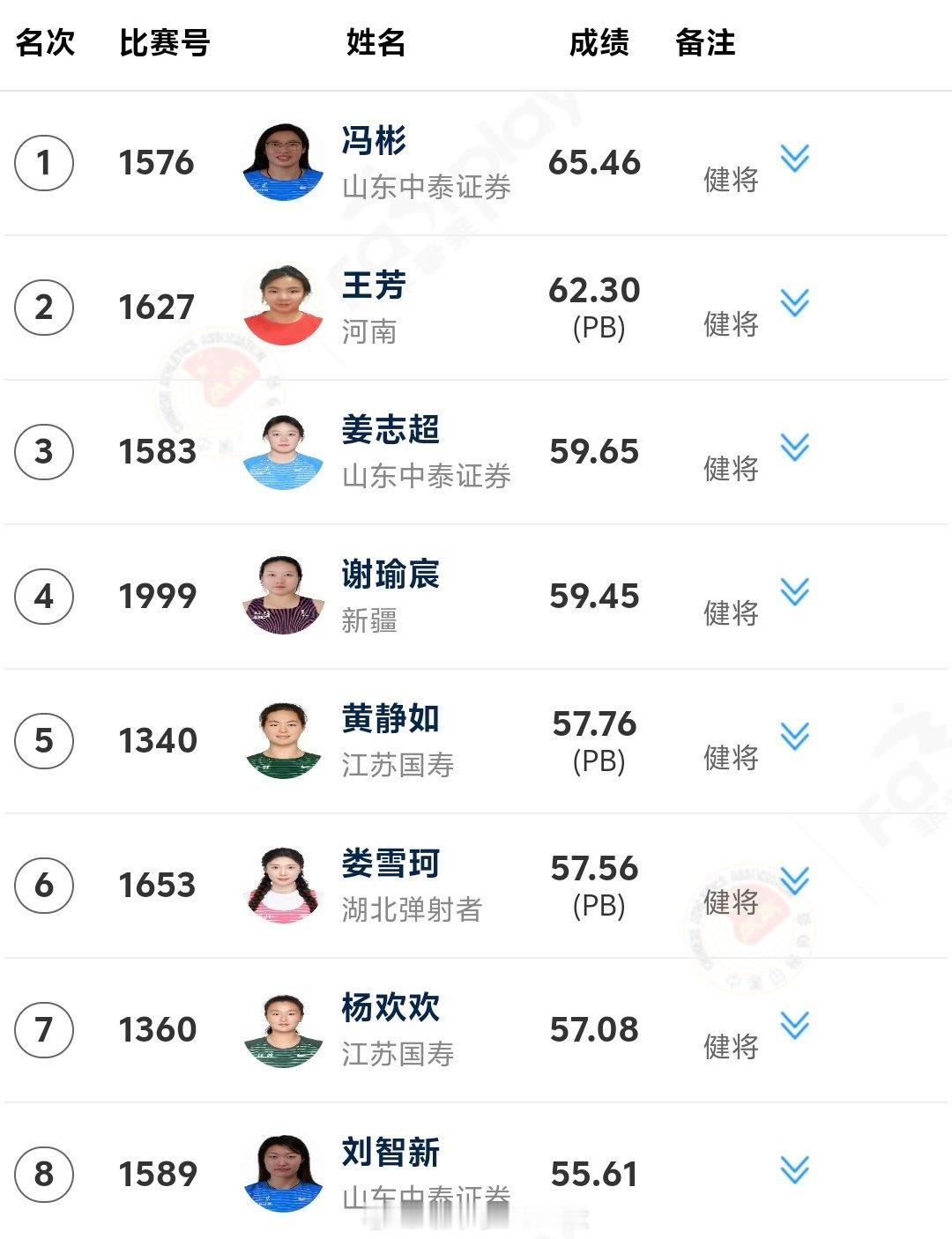 女子铁饼,冯彬、王芳、姜志超获得前三。无悬念!