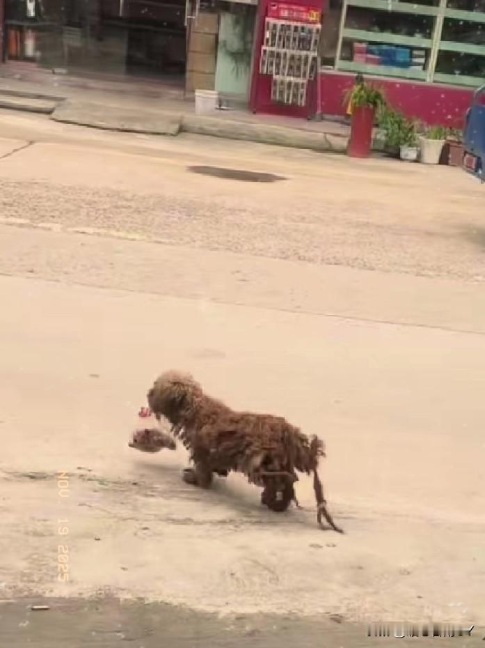 流浪狗“亮亮”的暖心蜕变:烤鸭香里的救赎故事! 烤鸭店门口总有个“小毛球”在晃悠,浑身卷毛脏的打结成绺,它每天都循着烤鸭的香气来报道。 老板心地善良,总会偷偷丢些肉给它,这只叫亮亮的流浪狗,就此赖在了店门口。 直到有一天,一位好心人看到它落魄的模样,心疼不已,便带它去了宠物医院。 医生帮它剃掉了杂乱的毛,体检完成后,还给它穿上了可爱的狗狗衣服, 并取名“亮亮”~ 曾经灰头土脸的泰迪流浪狗,瞬间变得精神又可爱,像换了个狗似的。 可亮亮并未忘本,依旧常往烤鸭店跑。老板看到它如今的模样,愈发喜爱。 过去每次见到它就给一块肉,这次老板直接递来一个大鸭腿,亮亮欢快地叼着大鸭腿就跑开,像过去一样,找了个角落美滋滋地啃起来。 从流浪时的饥寒交迫,到如今有了家还能回“娘家”讨肉吃,亮亮的故事,是烤鸭香里的温暖救赎,也蕴含着人与动物间最质朴的善意共鸣。 流浪狗