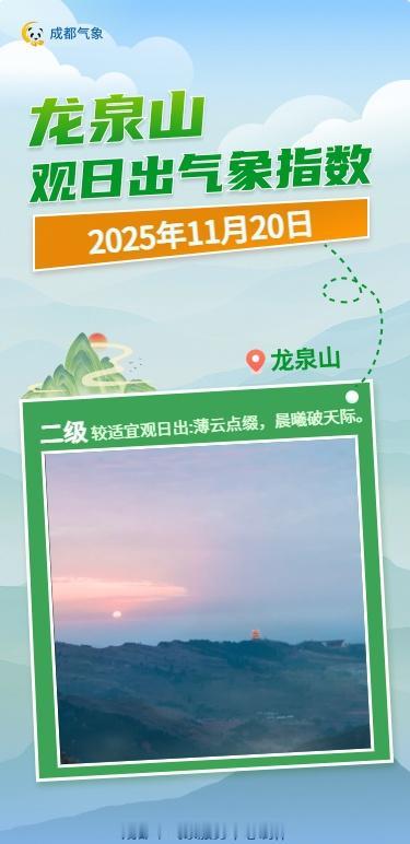 [太阳]明日龙泉山日出观赏依旧给力!观日气象指数二级,较适宜追光打卡~推荐直奔