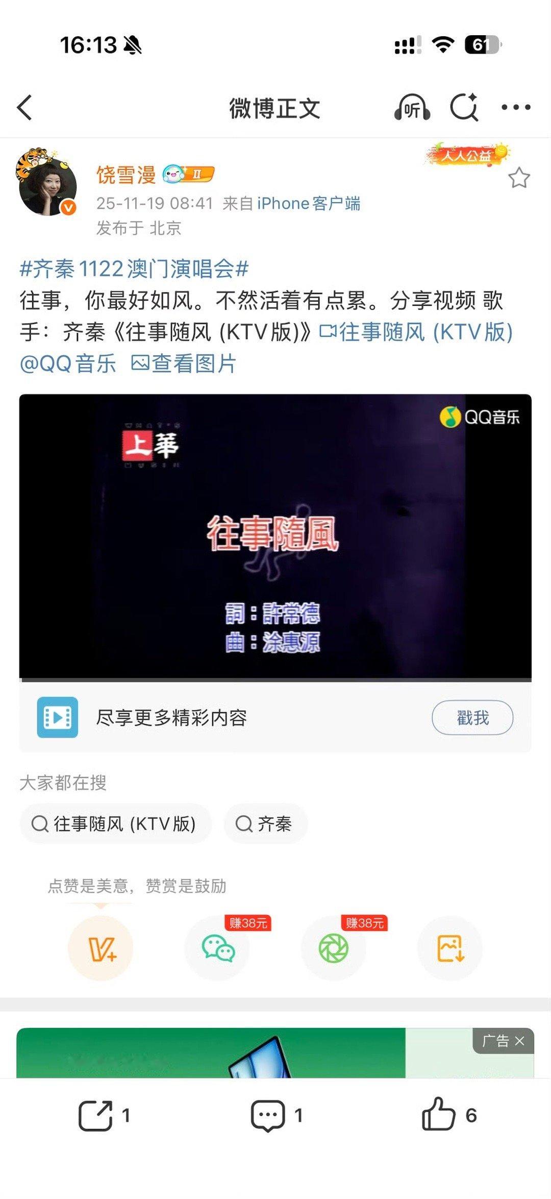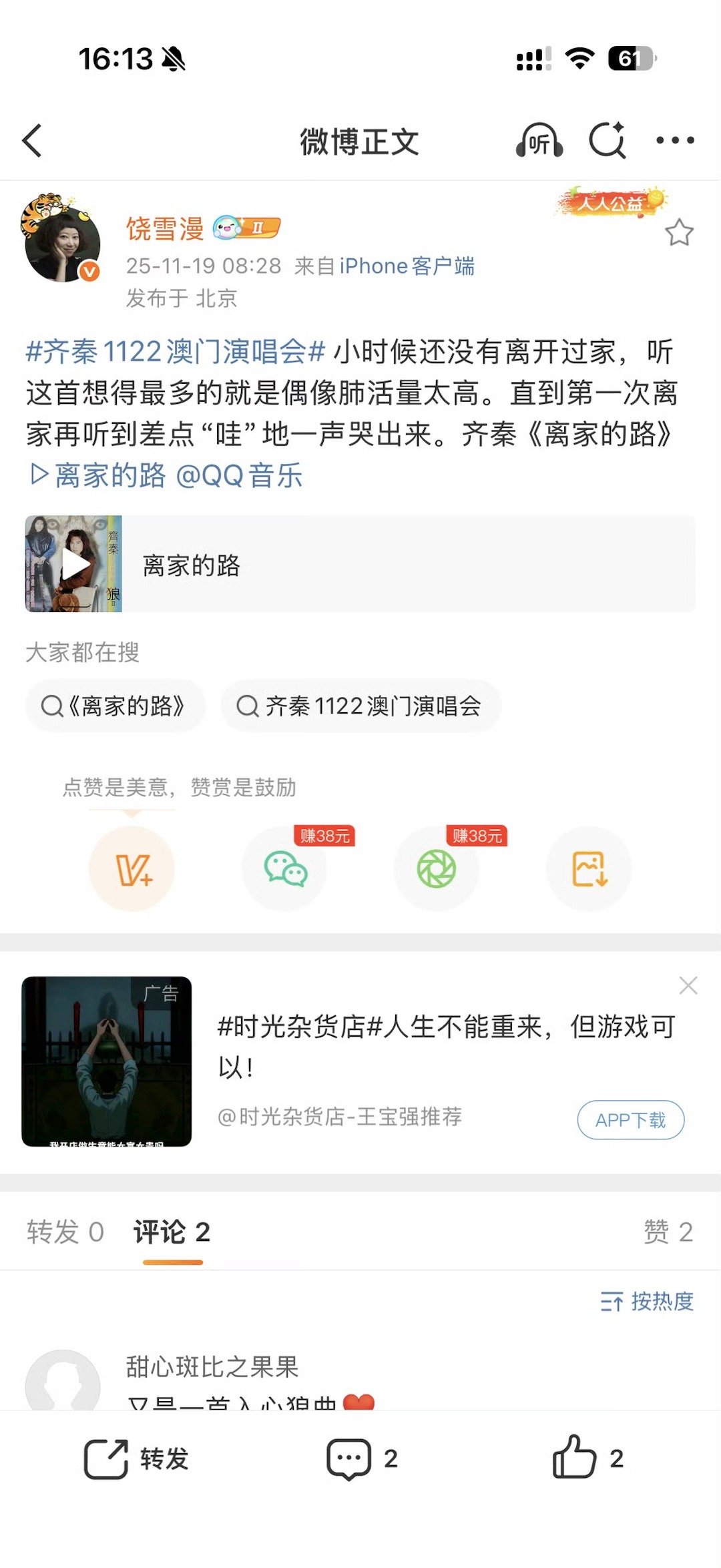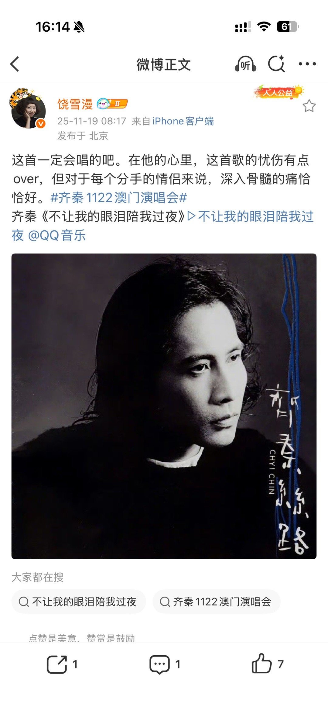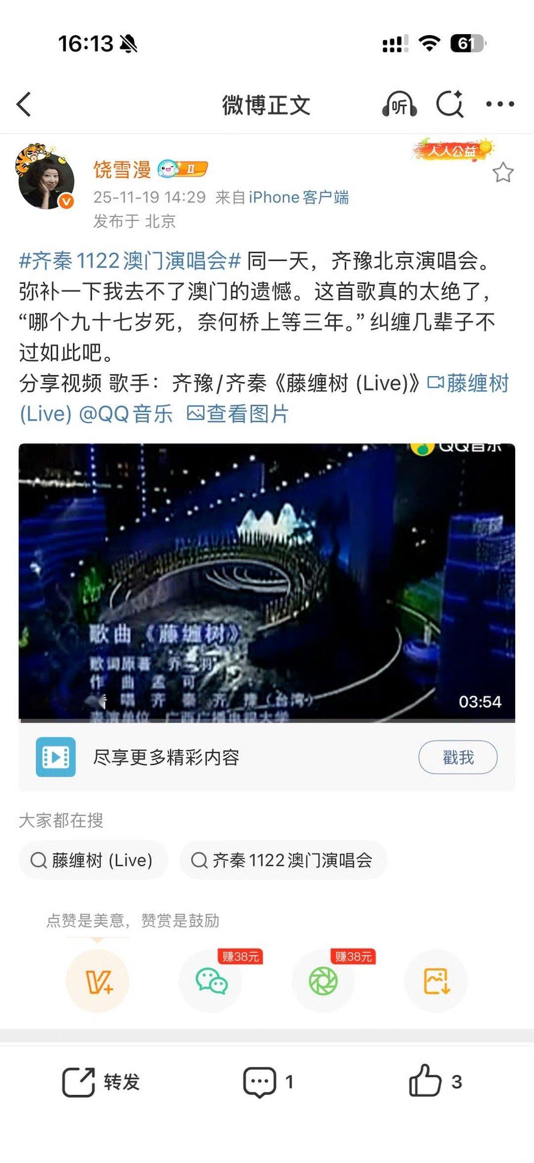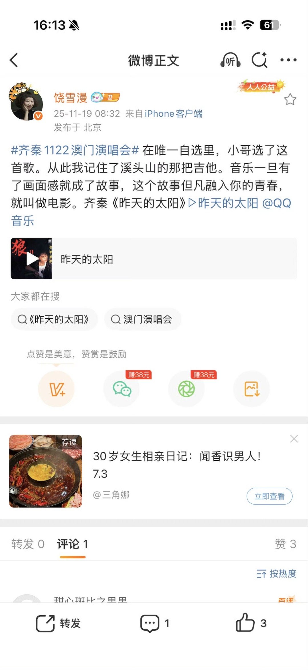 被饶雪漫安利齐秦的真诚打动了!她为《大约在冬季2019》写下的感悟,满是细腻与感动。这般全身心推荐偶像的模样,让人看到音乐带来的美好连接!
