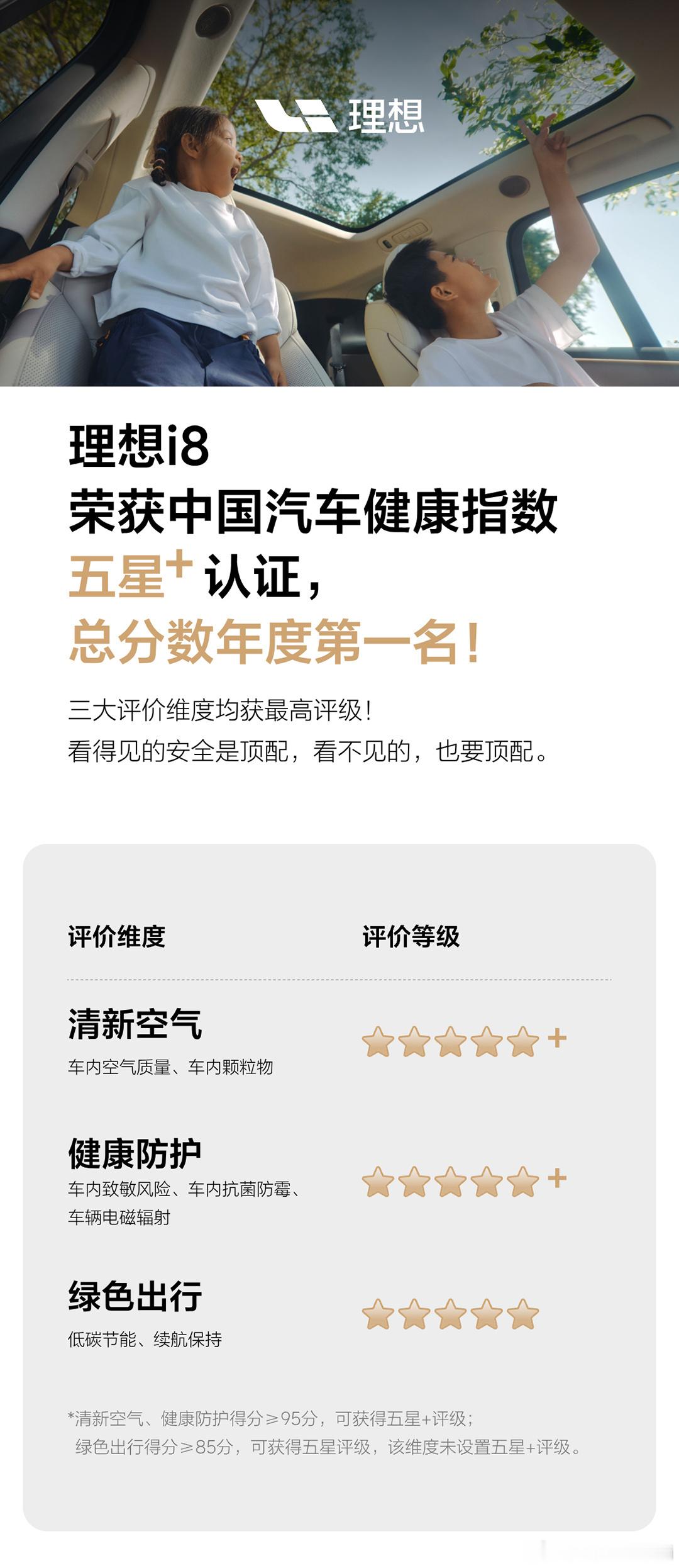 冷知识:其实理想从理想one到现在,全系车型的车内健康都是最高评价等级!🏅荣获中国汽车健康指数五星+认证,总分数年度第一名!