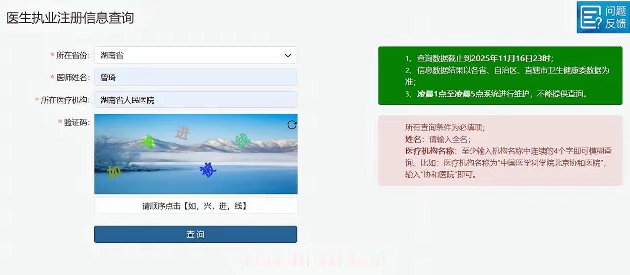 曾医生和祖院长已经离开了湖南人民医院! 11月19日,从国家卫健委医护人员执业信息系统查询,均未查到两人在湖南人民医院的执业注册信息,这意味着两人已经不在此医院行医,已经离开了该医院。 虽然当时医院对两人未进行吊销执业资格也未将两人开除,估计两人是自我意愿离开的,毕竟17分12秒的视频不仅轰动了整个医院,轰动了医疗系统,也轰动了整个网络。 再继续在原医院待下去,虽然同事不会说什么,医院领导不会说什么,患者不会说什么,自己也过不去心理这一关。 其实离开也是好事,可以对这次事件的反思,继续在自己的领域继续沉淀,痛定思痛可以换个医院继续为患者服务。 错了就是错了,改过了就好,人非圣贤,孰能无过。正视自己的错误,求得家人的原谅,尽量去弥补。 现在还没看到调查结果,拍摄者至今还是迷,小板凳搬好,坐等拍摄者的处理结果。
