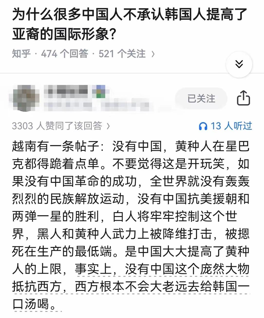 这个评论提高了越南人的觉悟!看一下联合国五个常任理事国,是不是美、英、法、俄四个国家都是白人国家,我们也是唯一的黄色人种国家! 我们直接提升黄种人的上限的存在,那还在乎韩国人是不是提升了亚裔的国际形象呢?所以很多人不承认韩国人提升了亚裔的国际形象也是再正常不过了!