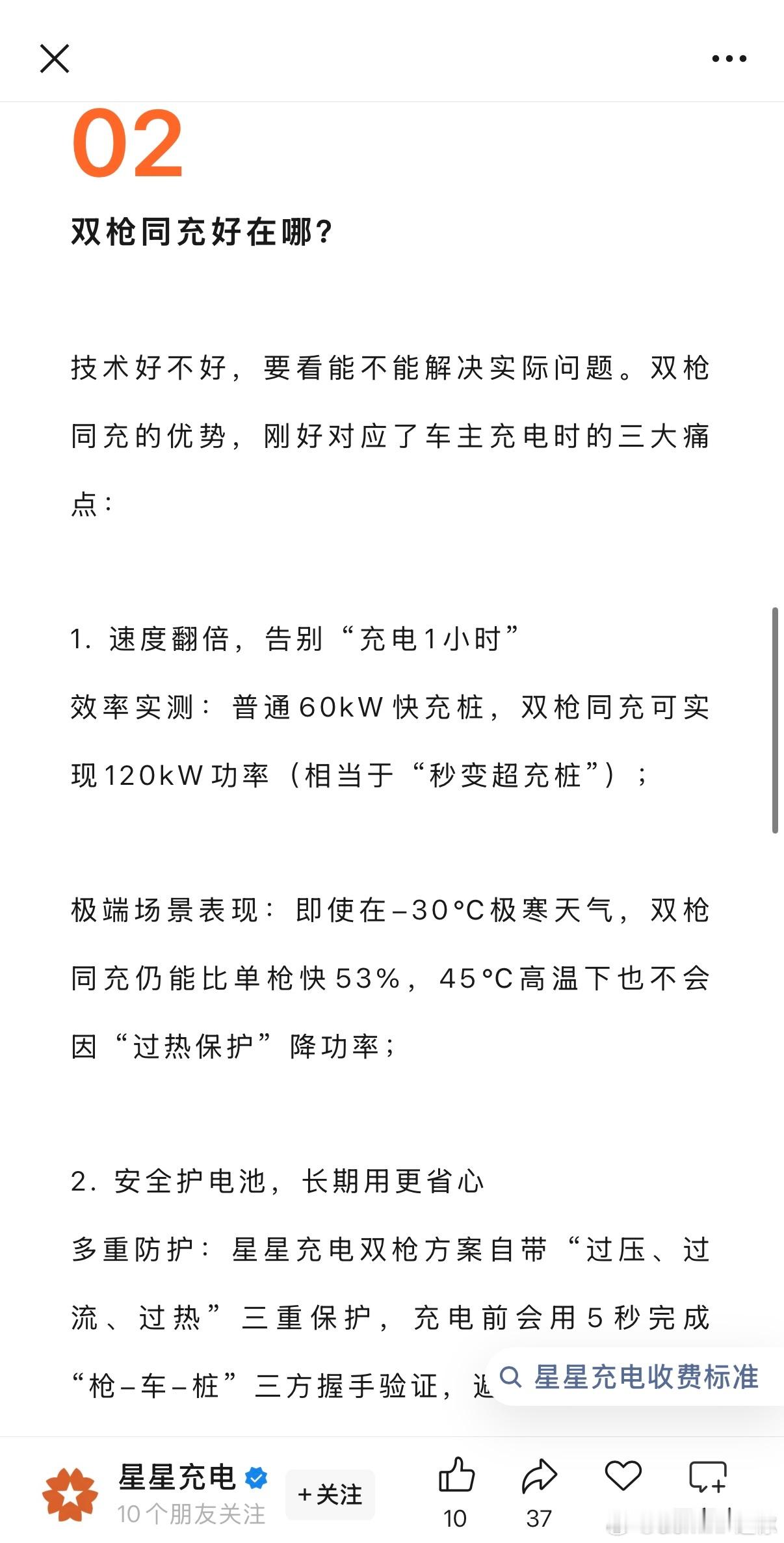关于双枪充电,最大的第三方充电桩运营商之一的星星充电发文了,肯定了双枪充电的技术进步双枪会不会影响运营方,我想没人比星星充电更懂吧