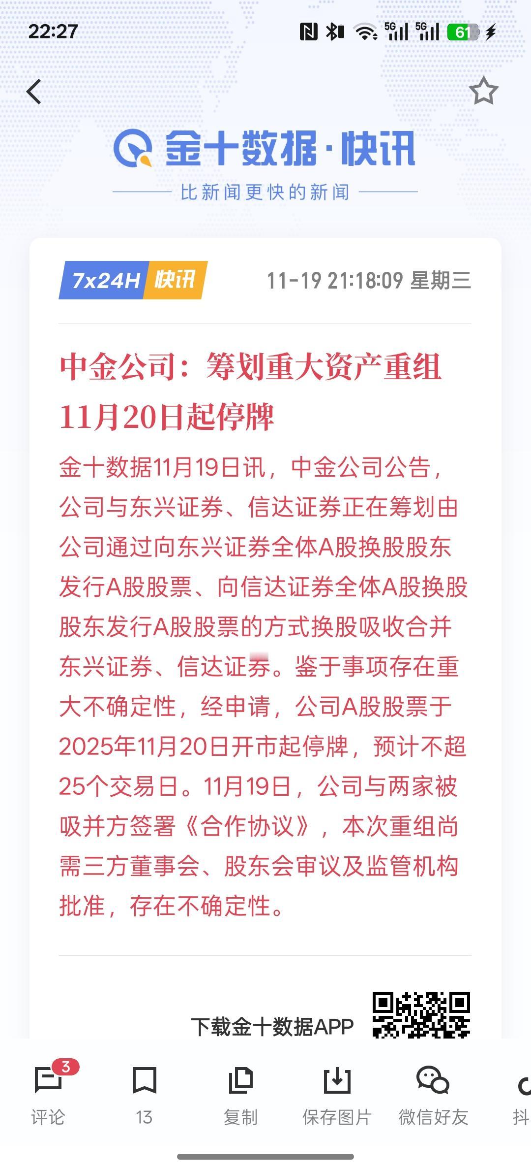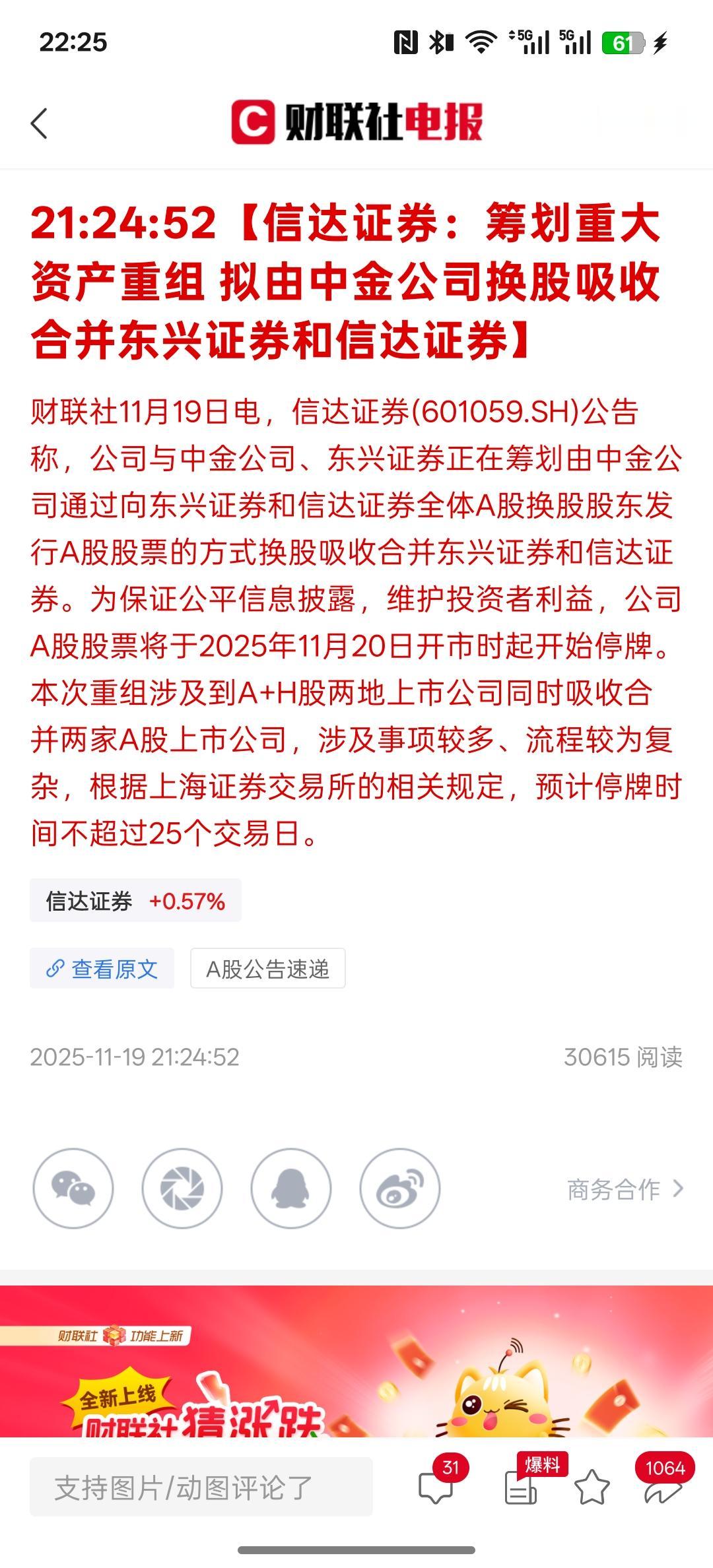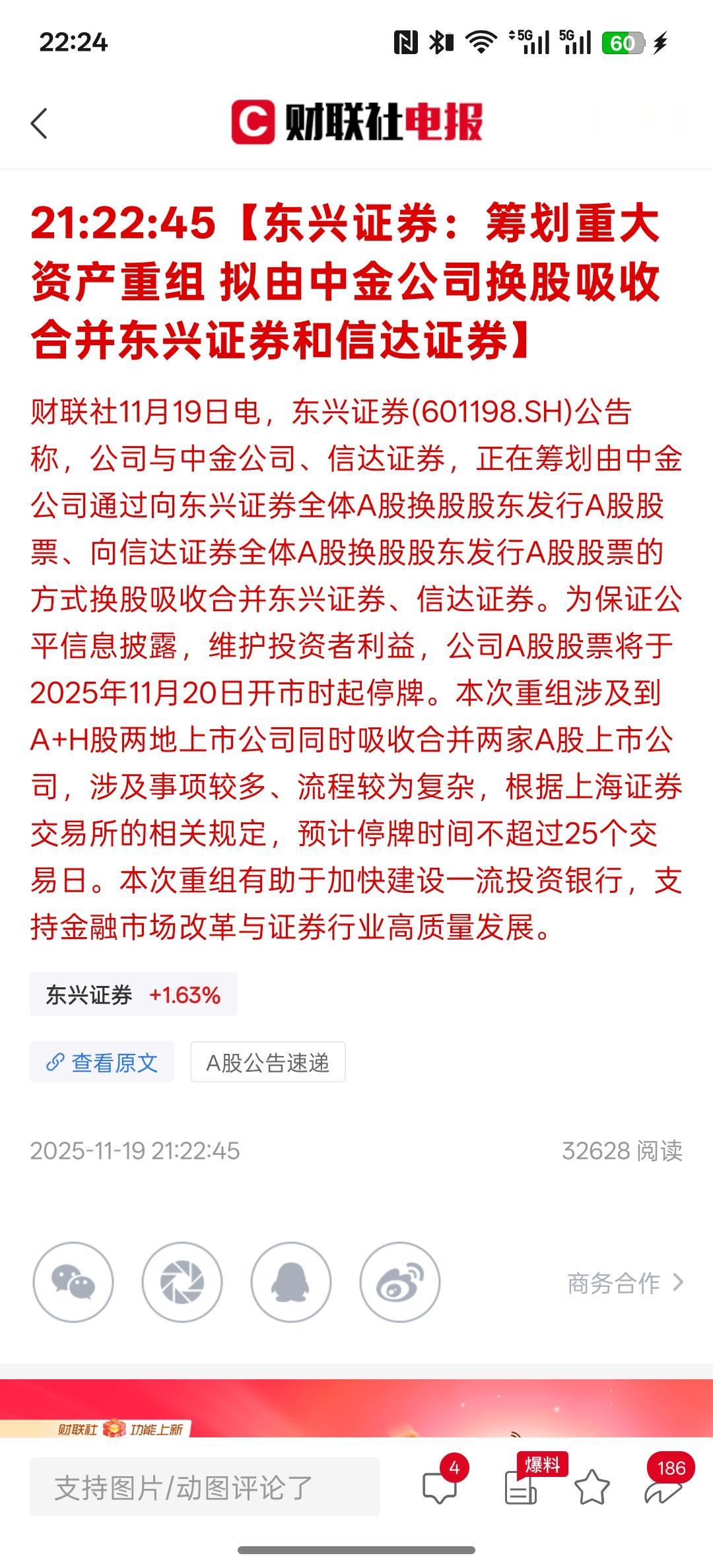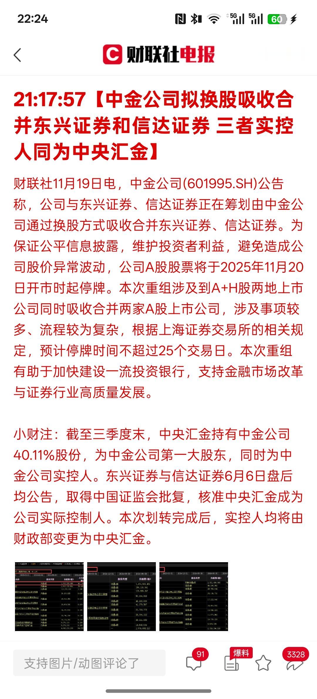 明天券商板块会大涨,带领整个大盘上涨,中金公司:筹划重大资产重组11月20日起