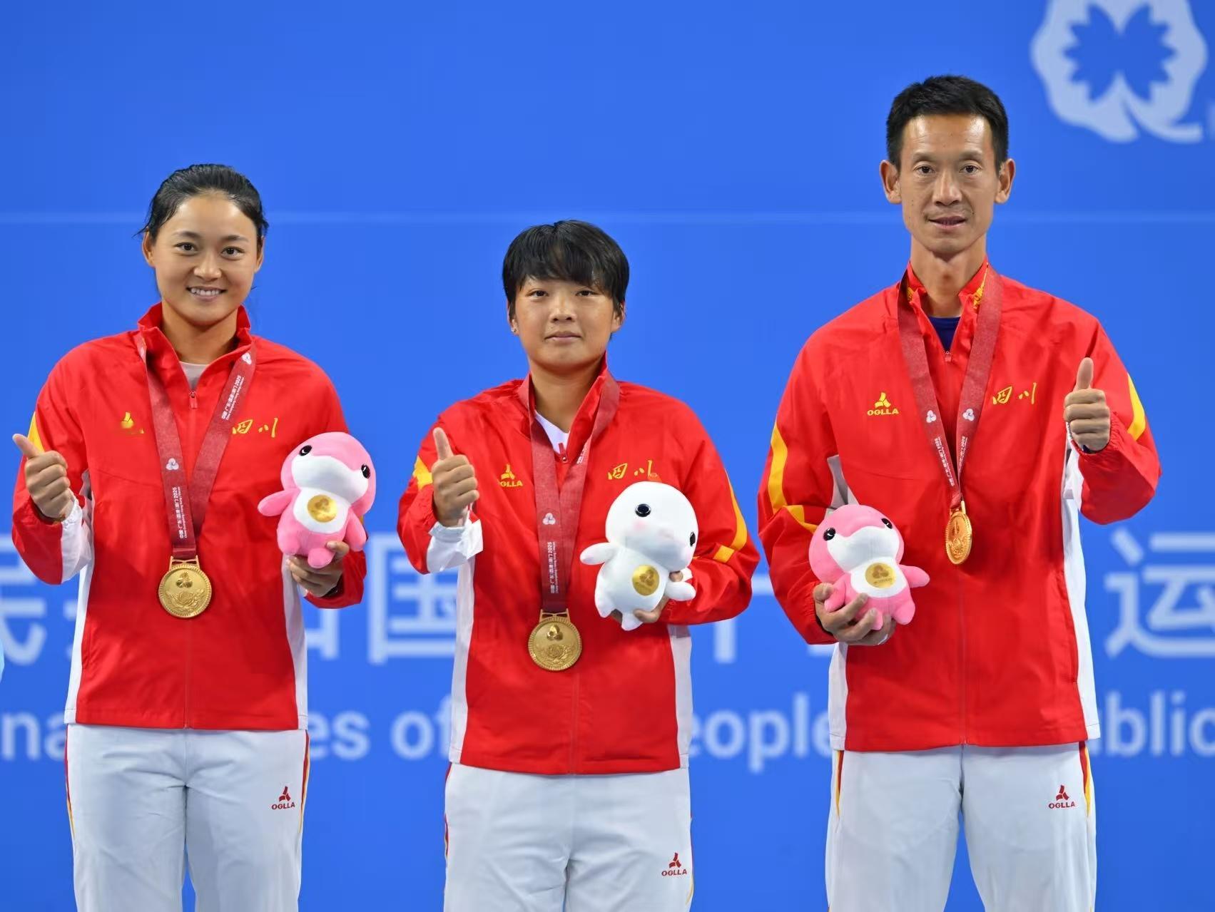 王雅繁/蒋欣玗(四川)6-1、2-6、10-6击败王欣瑜/袁悦(广东),摘得女双