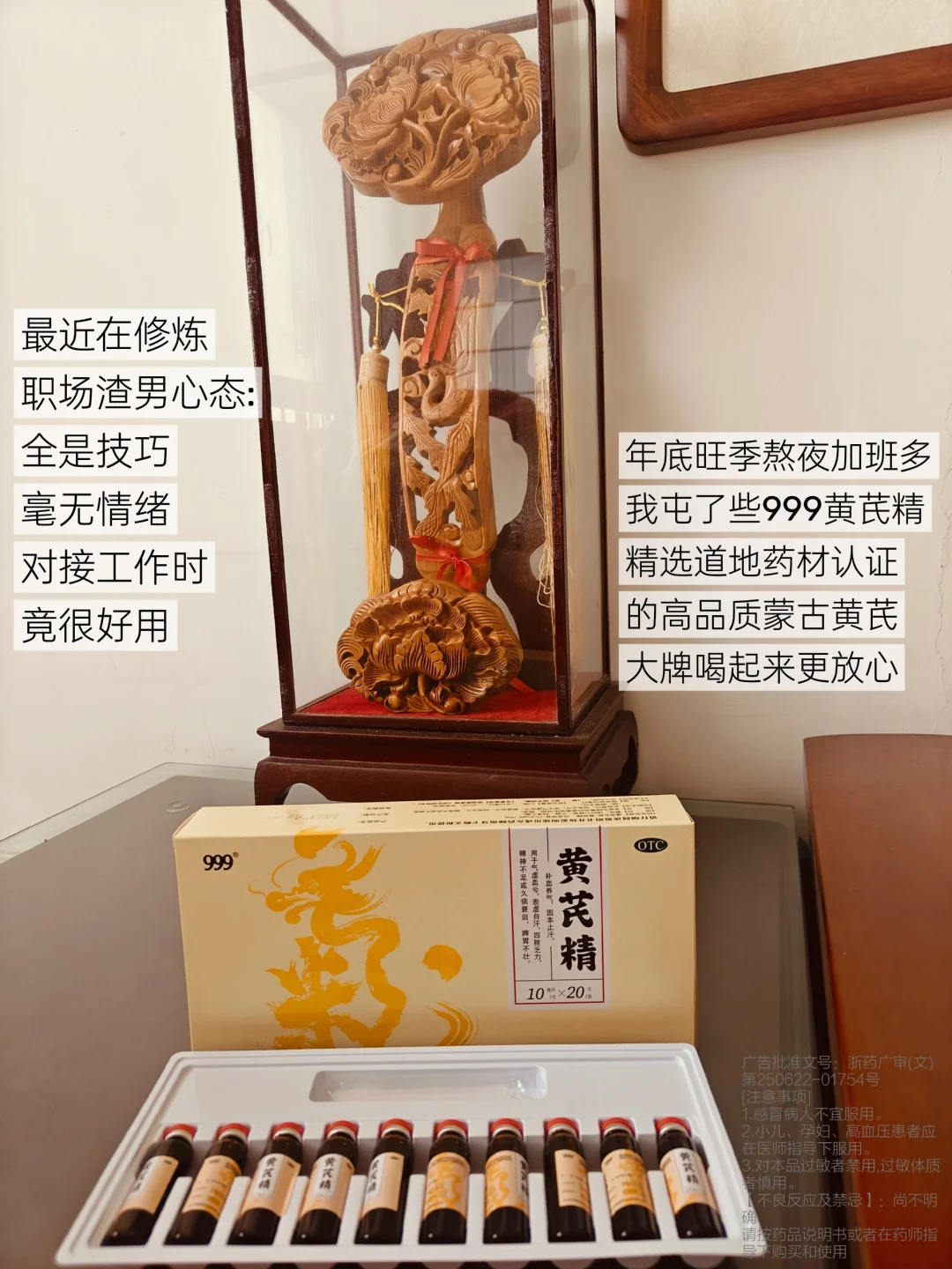 上一周科室大走访我发现,工位真是职场人设的具象化。文件埋起的牛马人,光秃秃的摆烂人。我工位是放很多养生小产品,符合我生活浓人的人设。年底旺季熬夜加班多,所以又屯了些999黄芪精,是精选道地药材认证的高品质蒙古黄芪。大牌喝起来放心,0香精0蔗糖0添加剂,配料表很干净。养生多了,领导都觉得你“贵重”,不自觉减少你的加班量了。