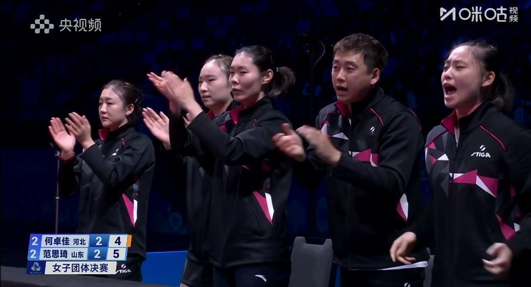 全运会山东乒乓球队的排名佈阵! 团体赛1/4决赛 耗时3小时20分 陈梦双打,输。 单打,胜! 山东队陈梦搭档王晓彤双打2:3负于湖南队胡丽梅/李思冰。 决胜盘单打陈梦3:0胜湖南赵阁。 团体赛半决赛 耗时4小时20分 陈梦1单, 一胜一负。 陈梦2:3负上海队陈熠。 陈梦自我救赎,又是决胜盘3:0胜上海削球手杨屹韵。 团体赛决赛 陈梦双打,胜。 但单打是3单,胜。 陈梦/王晓彤3:2河北队何卓佳/王添艺。 3单陈梦3:0胜河北王添艺。 决胜盘,夺冠的重担压到了范思琦的肩上! 不负众望,范思琦3:2胜河北何卓佳。 山东队 用人不疑,疑人不用。 排兵布阵,知人善任。