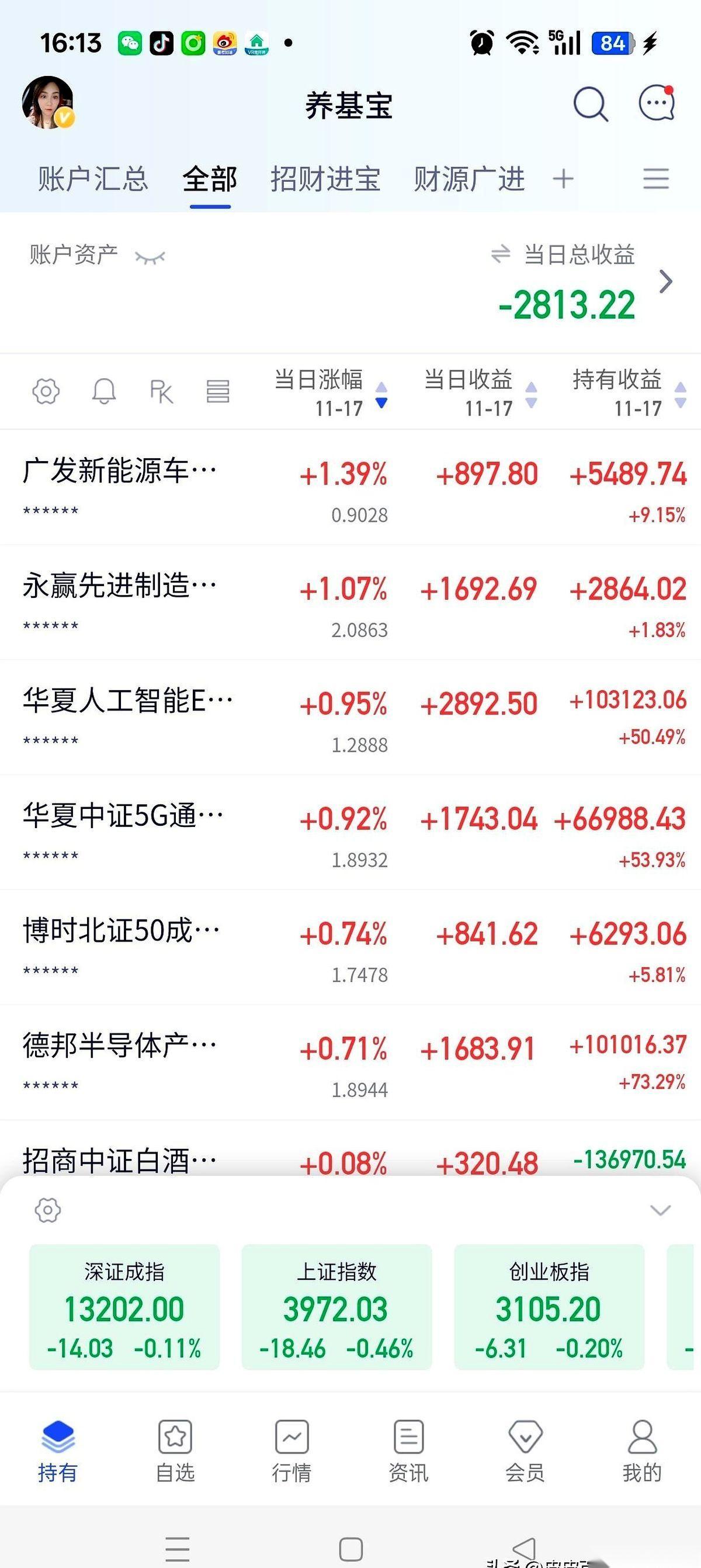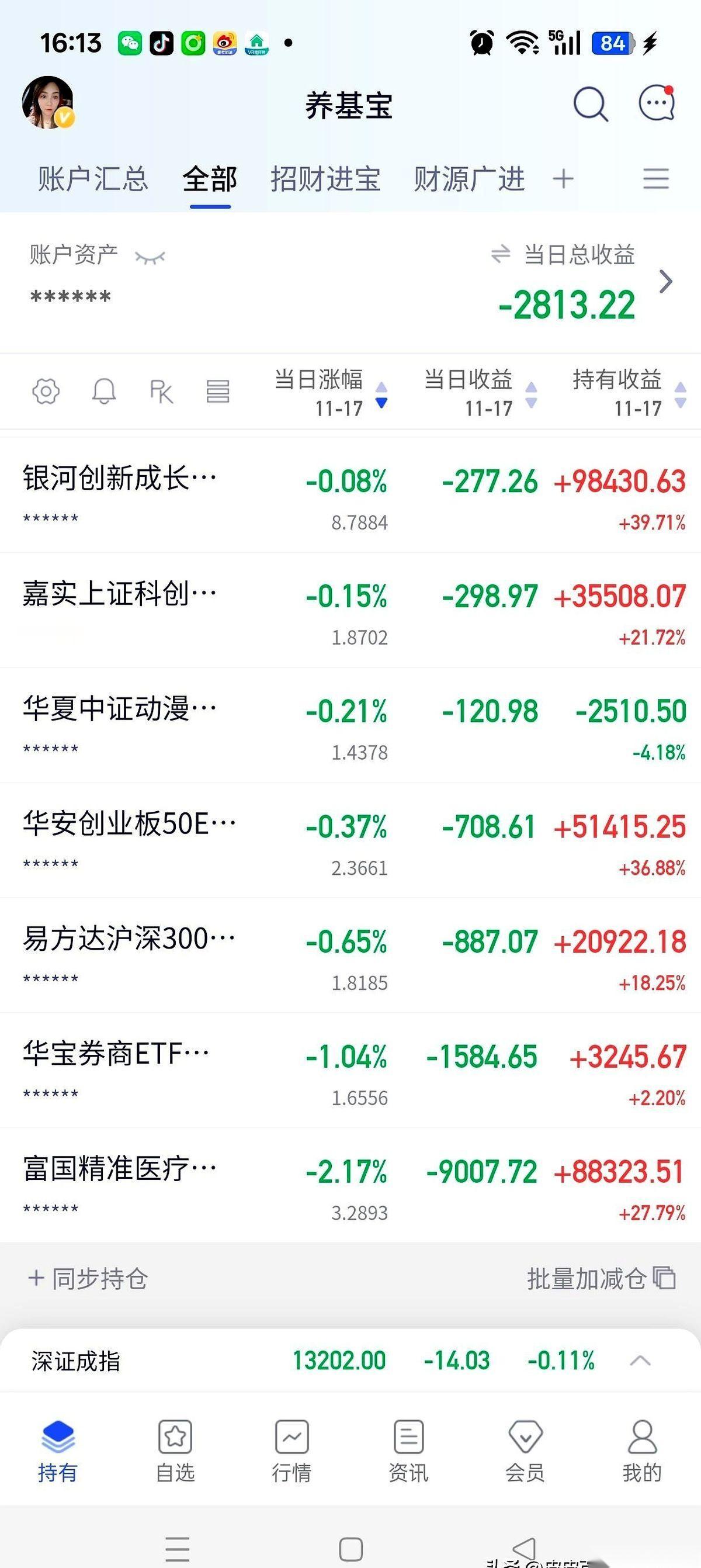 今天绿了2800块,我反手就加了一万。 你问我心疼不?说实话,早麻了。 真正折磨人的,不是这点涨跌,是这种半死不活的来回拉扯,钝刀子割肉,磨得你一点脾气都没有。 还跑赢了指数,你说搞不搞笑? 全班第一考了30分,我考了31,光荣吗?不都是在ICU里躺着,比谁的呼吸机好使点儿罢了。 手里的AI、机器人这些“争气儿子”,拼了命地想把我从坑里拉出来。 奈何医疗、券商这两个“败家玩意儿”,死抱着我的大腿往下坠。 这叫投资吗? 我感觉我每天上班摸鱼看的不是K线,是心电图。 就想问问,那4000点,是有什么魔咒吗? 是登上去会羽化成仙还是怎么的?就这么难? 算了,不说了。 我们这帮人,赌的早就不止是钱了,是那口气,是相信明天会更好的一点点执念。