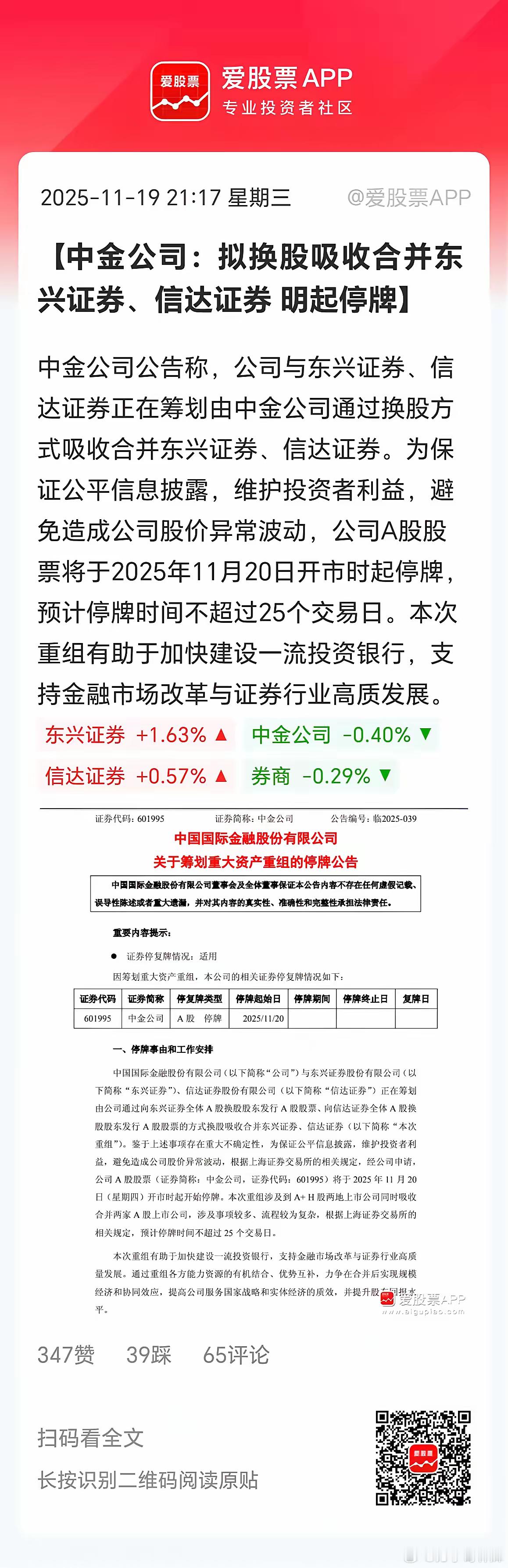 券商来利好了,中金公司吸收合并东兴证券和信达证券,这是要打造券商航母的节奏啊!这次保密工作做的好啊,中金、信达股价还天天跌呢。不出意外,明天要拉一波券商了,会带动大盘直冲4000点么。作为牛市旗手的券商,已经横盘阴跌了3个月,每天被摁得死死的。但在A股低迷的当下,应该让券商起势一波,给市场打一剂强行针!国内上市券商确实太多了,合并一些也好,主要业务高度同质化。现在我们缺的是比肩高盛、大摩的券商航母,要想成为金融强国,就必须做强做大券商,这样才有更多的话语权啊。