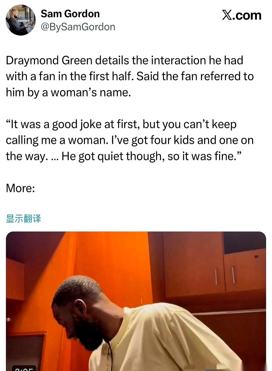 “我有四个孩子,还有一个在肚子里……” 真想不到,这话是从一个顶薪的NBA球员嘴里,对着场边一个骂骂咧咧的球迷吼出来的。 就因为那哥们儿,没完没了地喊他一个女人的名字。 这事儿就挺魔幻的。 球场上,同一个队里,你的队友正“神仙附体”,进入了那种玄之又玄的“心流”状态,篮球在他手里好像装了导航,怎么投怎么有。那是运动的最高境界,是艺术。 而球场下,一步之遥,你却在处理着最原始、最接地气的挑衅。 跟一个花了钱买票,就觉得能对你指名道姓、肆意侮辱的陌生人,掰扯“你不能一直管一个大老爷们儿叫娘们儿”这种小学生级别的道理。 科尔教练怎么说? “我没啥意见,只要别动手就行。” 看,这就是见过大世面的样子。云淡风轻,只要别把事儿闹大,你们聊聊人生也无妨。 但真正牛逼的,还是格林的回应。 他没跟那人比谁嗓门大,也没问候对方家人。 他只是把自己的生活,自己的身份,最真实、最柔软、也最坚硬的一部分,直接甩在了那句廉价的嘲讽上。 “我是一个父亲。” 这句话的分量,比任何垃圾话都重。 有时候想想,最高级的回应,从来不是愤怒的对骂。 而是平静地告诉他: 你看,你在第一层,而我,在生活里。