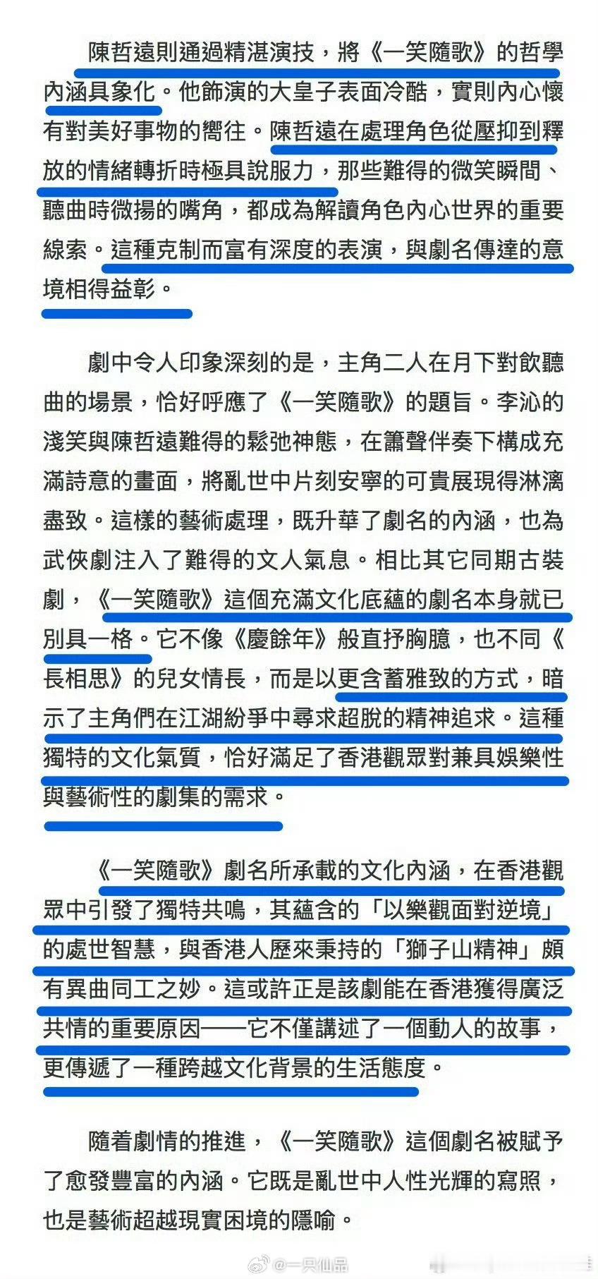 香港文汇报报道《一笑随歌》,大赞陈哲远演技克制而富有深意