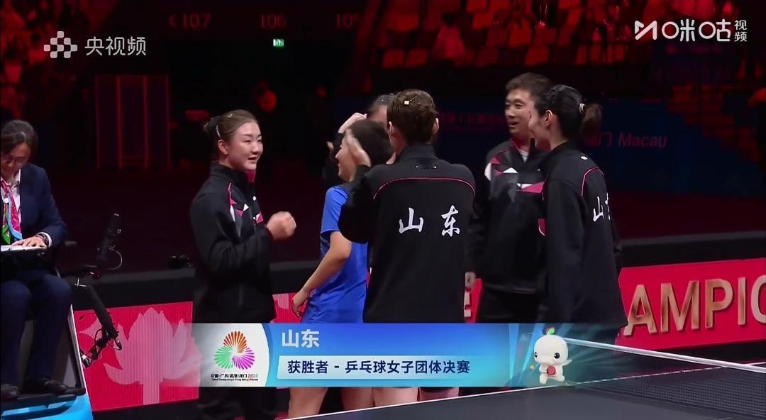 乒乓球女团巅峰对决最后一球落地,范思琦没哭,陈梦却抹泪了! 乒乓球山东女团与河北女团巅峰对决,鏖战五盘。 当山东队范思琪决胜盘决胜局最后一球落地,3:2绝杀河北队何卓佳,为山东乒乓球女队锁定团体赛冠军! 这时,范思琪没哭。 山东陈梦却激动地哭了! 因为太难了,这个冠军来之不易! 2024年巴黎奥运会单打夺冠后,身心需要调整。年底又退出了世界排名,9个多月没有系统训练、没有参加比赛! 为了乒乓球事业,为了养育自已的父老乡亲,奋身一搏! 谈何容易? 全运会乒乓球团体赛1/4决赛和半决赛,这两场决胜盘比赛承担的压力,泰山压顶! 不然前功尽弃,不能参与团体赛的巅峰对决! 在为对手山呼海啸声中取得了胜利,又何曾相似! 当胜利来临时,怎能不喜而泣?