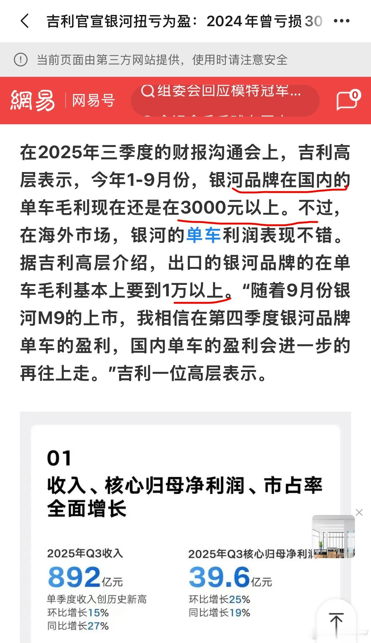 吉利银河品牌1-9月单车毛利3000元以上,明年新能源车购置税恢复5%增收,以销量最大的银河星愿为例,根据2026年新能源汽车购置税政策,吉利星愿(6.88-9.78万元)明年需要缴纳的购置税3440-4890元。由于市场竞争,估计明年新能源车都要自己承担这部分税,也意味影响品牌利润会降低,银河今年这点利润,明年是否能维持,不好说。